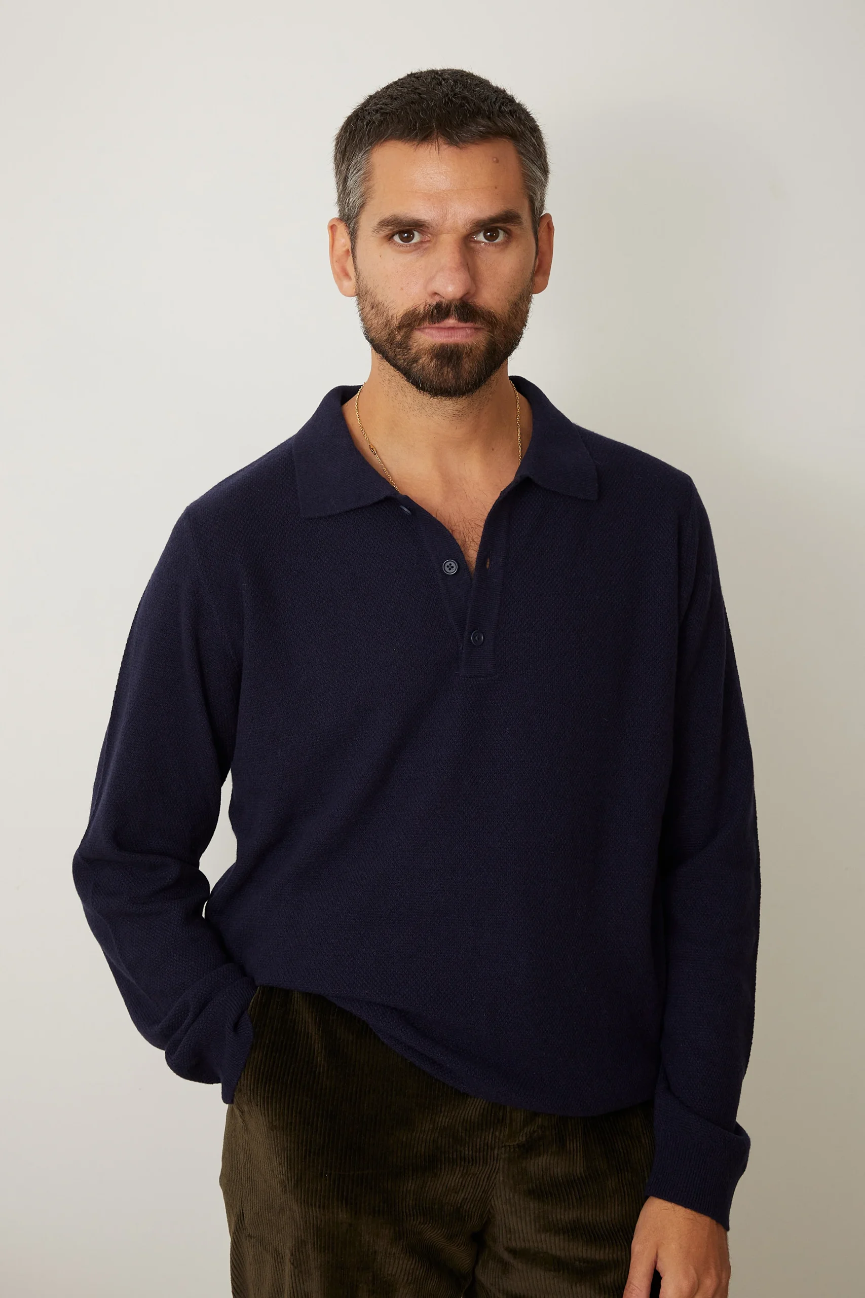 Bruno, notre mannequin, mesure 1m85 pour 72kg et porte une taille M.