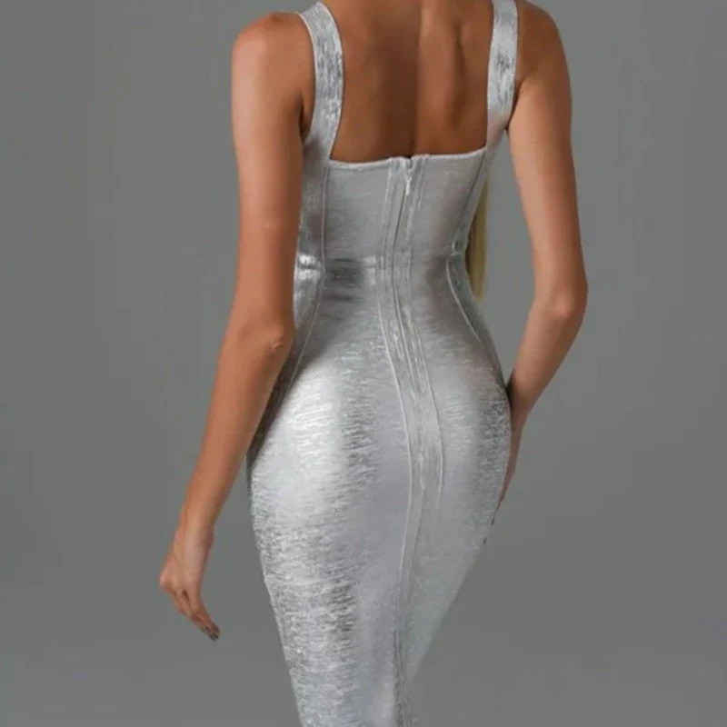 La robe argenté soirée avec ses bretelles larges est une robe avec laquelle vous ferez sensation ! Cette robe est un indispensable dans votre garde robe. Le décolleté rond de cette robe à de quoi mettre en valeur votre poitrine. Cette robe est composée d’un tissu très fluide et léger afin d’épouser vos formes assurant un confort non négligeable. Cette robe à effet métallique doré ou argenté est juste parfaite pour vos soirées !