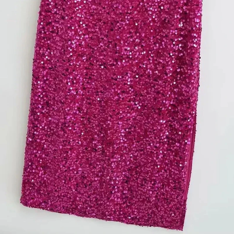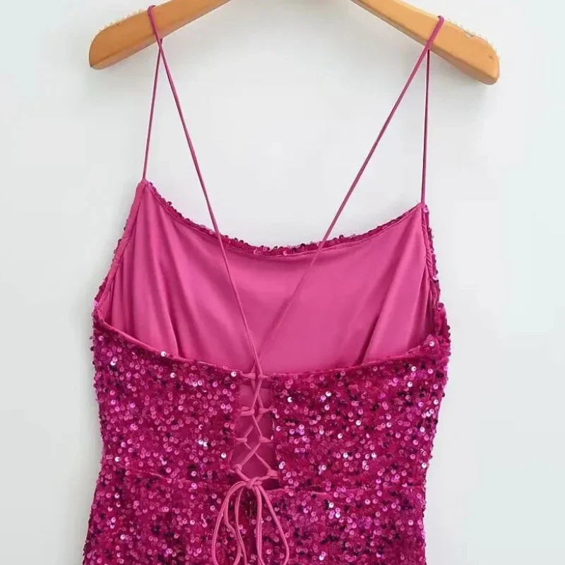 Alerte à la pépite ! On craque pour cette robe bustier fendue à paillettes rose tout simplement magnifique. Avec sa coupe fendue, son décolleté et son dos lacé, elle vous donnera à coup sûr un look super-sexy et tellement chic avec son effet pailleté. Associez-la à votre paire de talons préférée, une petite pochette et vous êtes prête à briller.