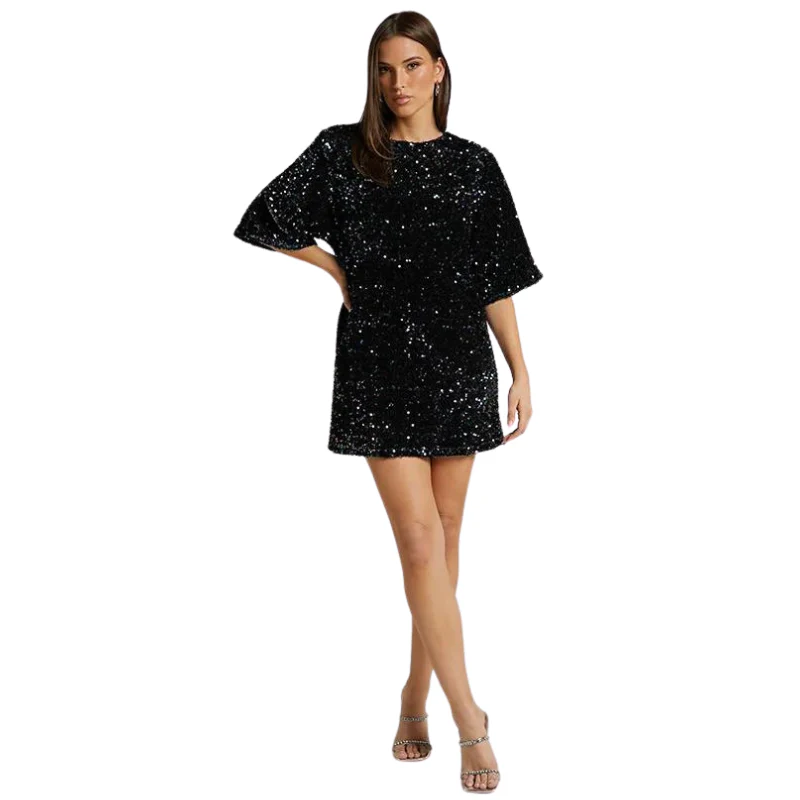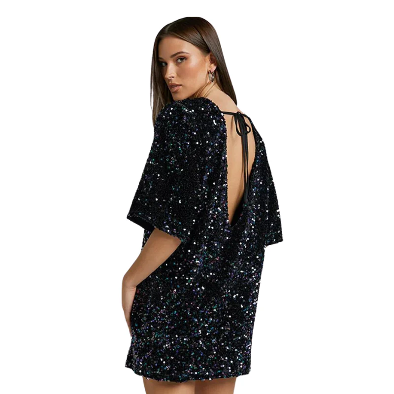Optez pour un look disco avec notre robe t-shirt à paillettes dos nu. Avec sa texture glamour scintillante et sa coupe classique, cette pièce est à la fois intemporelle et raffinée avec une touche de glamour qui dévoile subtilement le dos. Comme si le style des années folles avait été réinventé avec une touche de modernité, sublimez votre style vintage à la perfection avec ce modèle magnifiquement irisé.