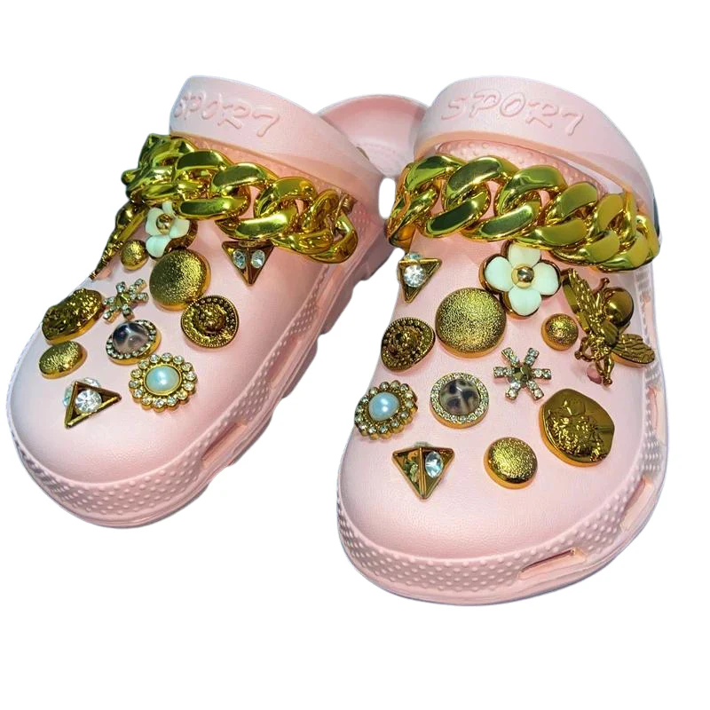 Cette version des Sabots Strass Doré est fabriquée dans une adorable matière pailletée qui vous permettra d’être chic et confortable tout au long de la saison. Ses jolis strass et ses pompons réglables ajouteront un look unique et étincelant à vos styles, tandis que la résine le rendra léger et confortable à porter. Il ne vous reste plus qu’à briller !