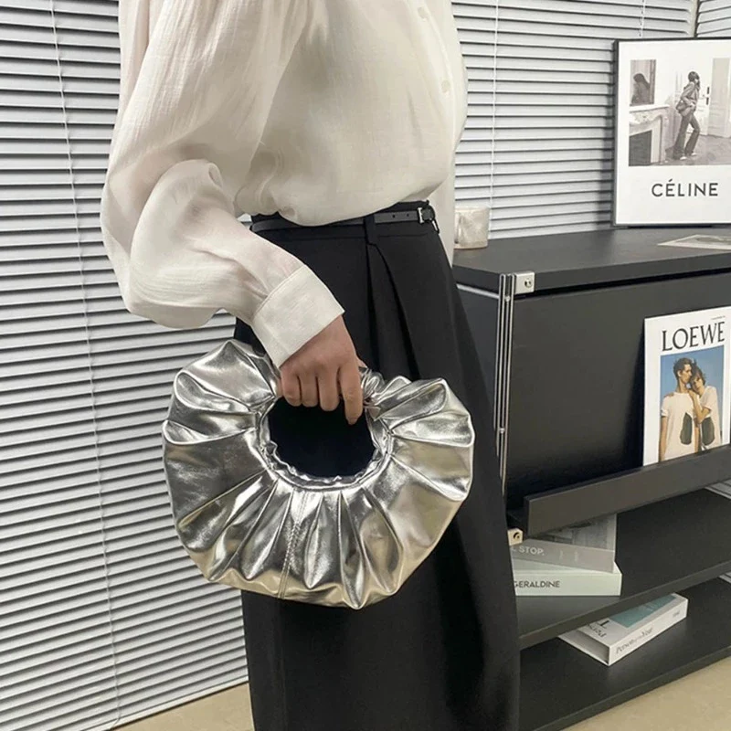 Ce sac argenté effet froissé est un véritable intemporel, Modèle citadin vous suivra tout au long de la journée. Il est réalisé dans un beau faux cuir souple. Il se distingue par sa forme arrondie façon banane et son anse large. Entièrement zippé, il permet d ‘y mettre votre nécessaire.