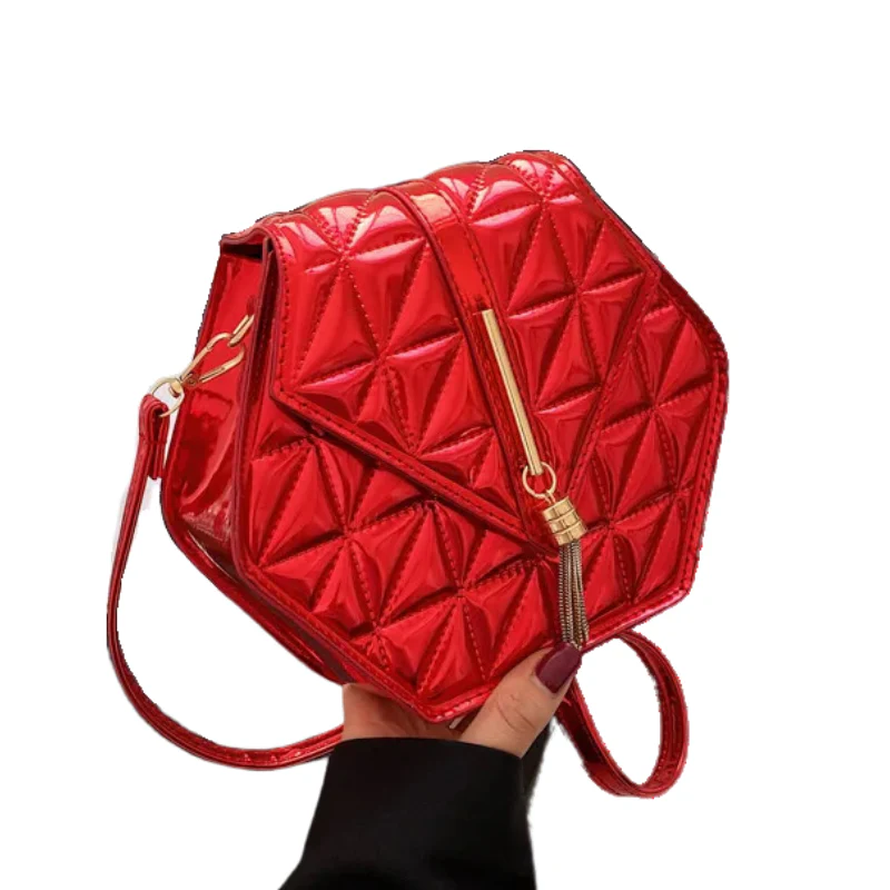 Démarquez vous avec le sac doré hexagone PU cuir. Vous aimerez sa forme originale et ces couleurs luxuriantes. C’est un accessoire indispensable pour affirmer votre style et vous ne passerez pas inaperçu, gardez tout à portée de main avec goût.