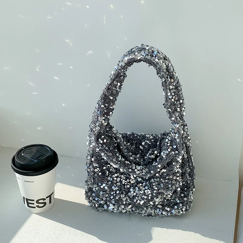 Ce sac avec sa bandoulière est entièrement recouvert de sequins. Il possède une anse longue. Il possède une petite poche à l’intérieur. Il se ferme par un zip doré. On le porte aussi bien pour accessoiriser un look soir qu’au quotidien pour ajouter une touche de lumière à nos tenues.