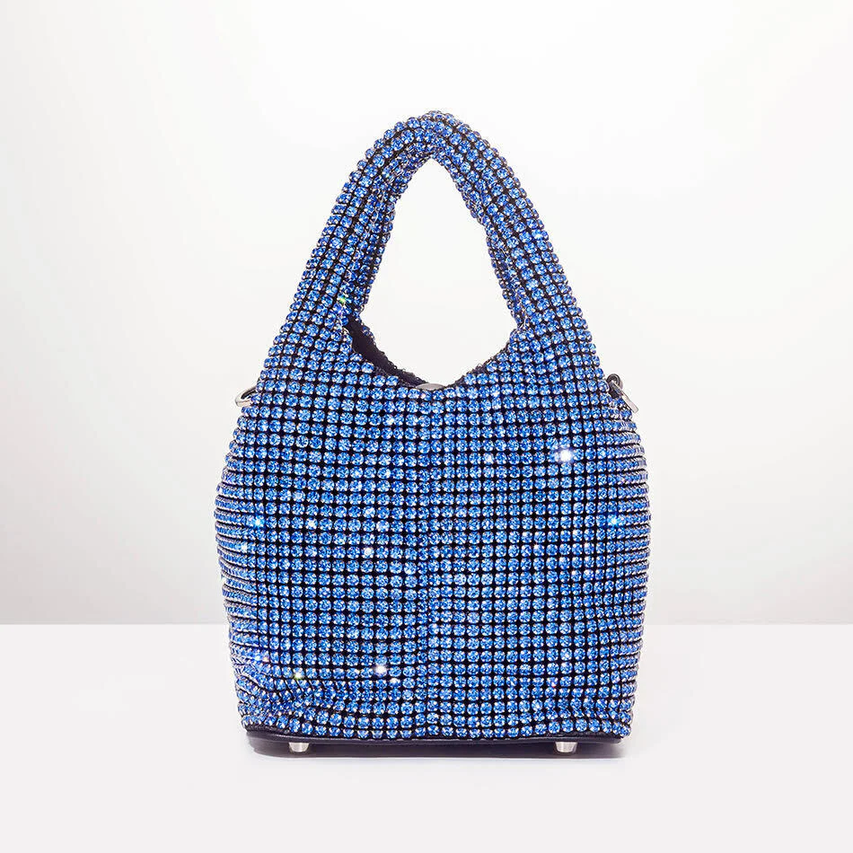 Le sac strass poire apportera instantanément de la personnalité à n’importe quelle tenue. Confectionné en relief métallisé et tout en strass, il arbore une bandoulière supplémentaire en maillons et des détails cloutés tout en audace. Nous adorons la façon dont l’anse façonnée se porte confortablement à la main.