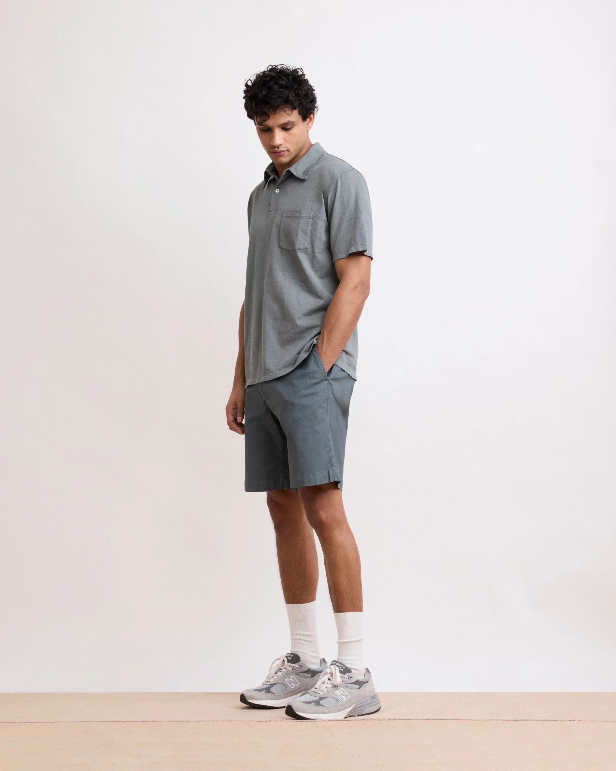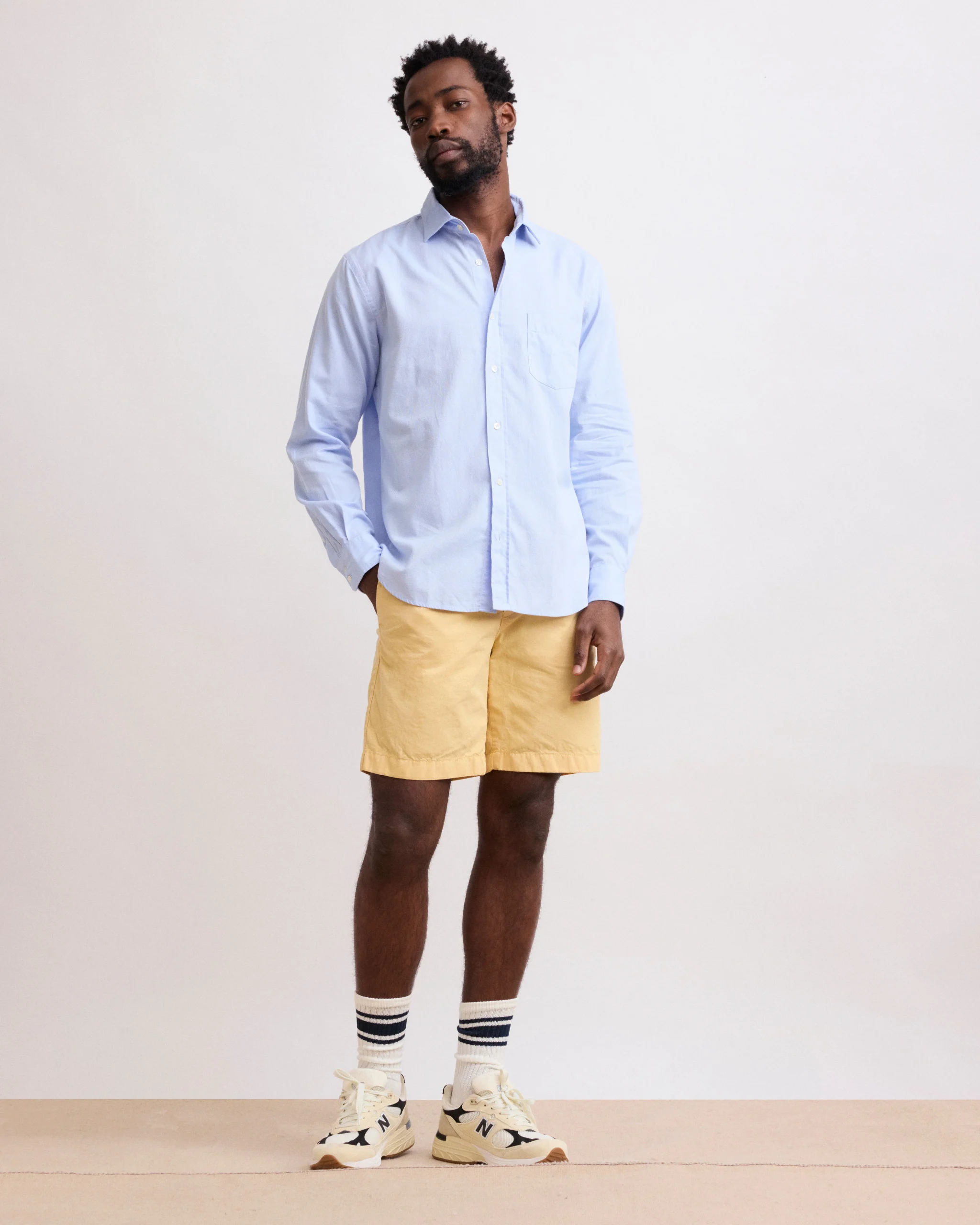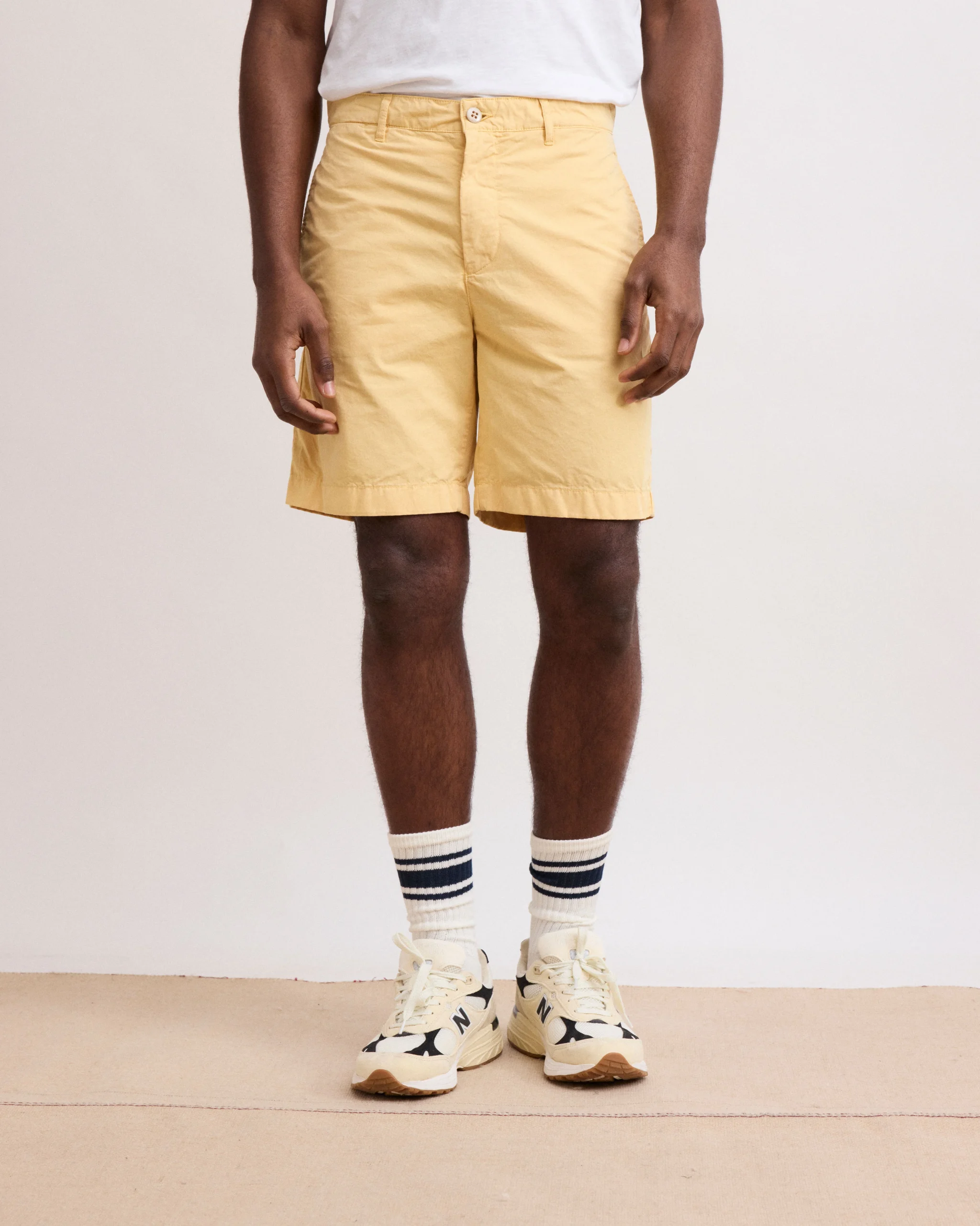 Short fille court en éponge. Taille élastique avec un lien coulissant écru. Deux poches plaquées devant et une poche plaquée à l’arrière.