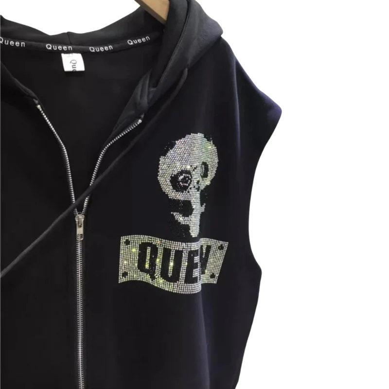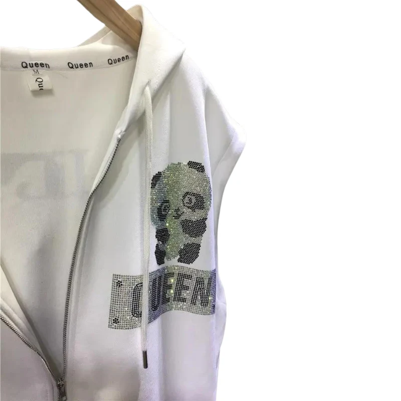 Ce sweat-shirt sans manches Panda Strass pour femme est la veste à avoir pour tous les fans de streetwear à la recherche d’un look HipHop. Ce vêtement zippé à capuche présente un motif de panda rehaussé de strass. Adapté à toutes les occasions, ce sweat-shirt est un complément tendance à votre garde-robe. Son tissu doux et respirant vous assure un confort durable. Portez-le pour un style flashy qui se démarque de la foule.