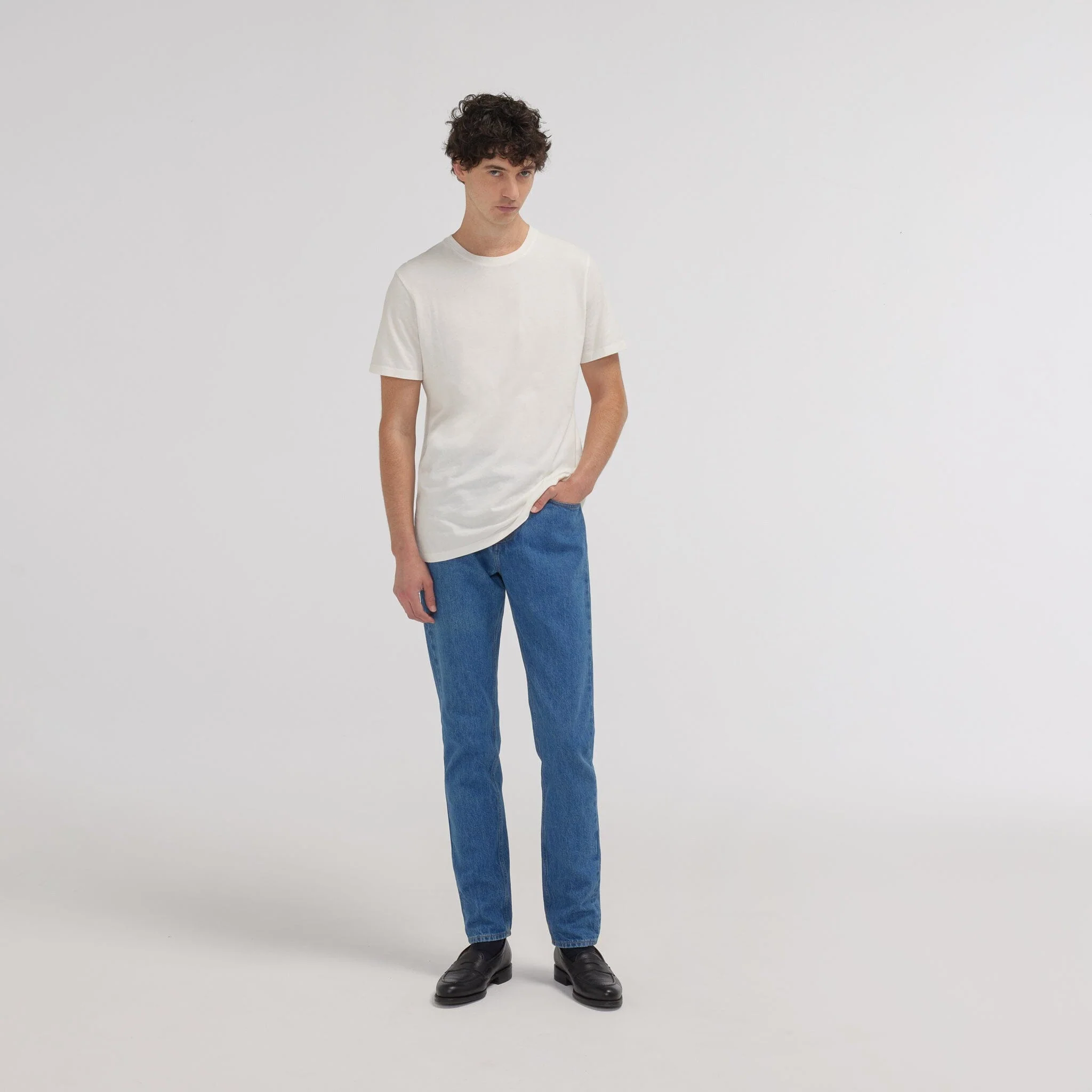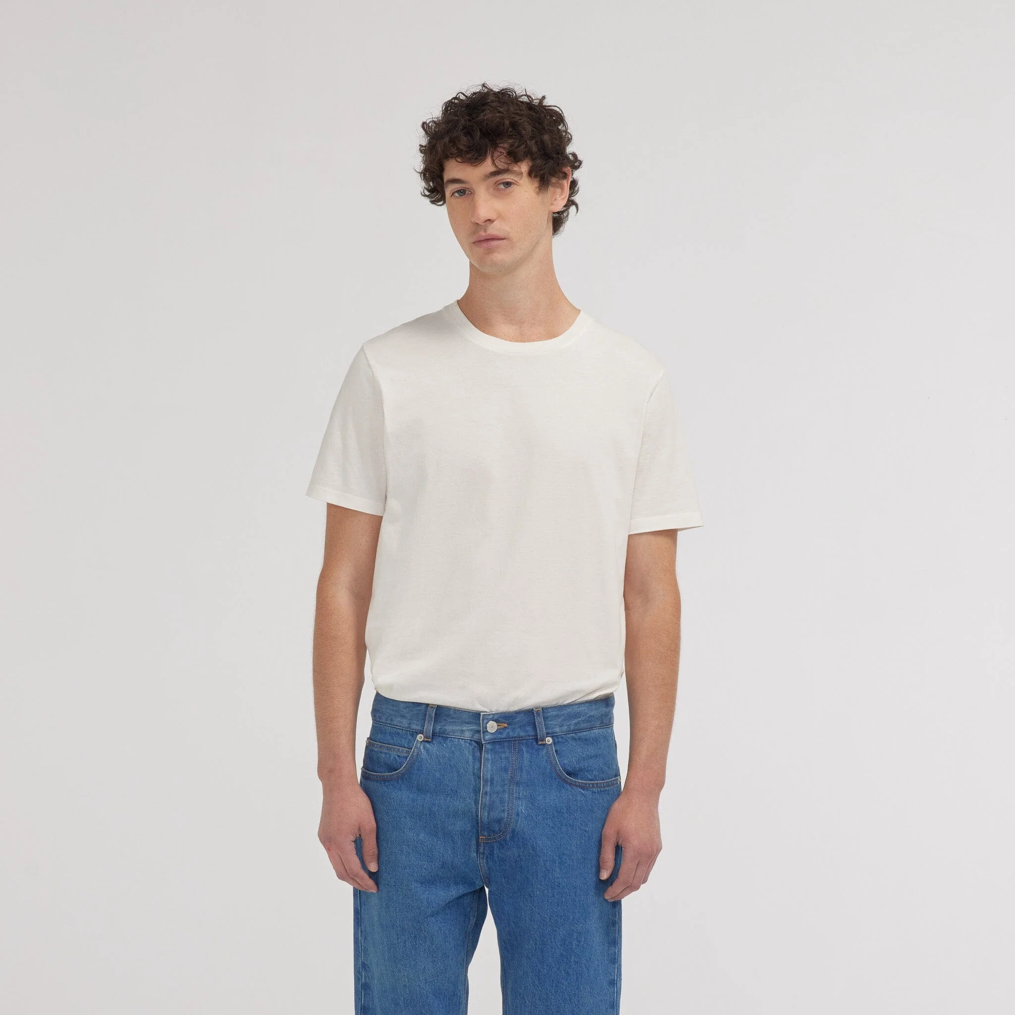 Un t-shirt en coton biologique certifié GOTS confectionné au Portugal, aux lignes épurées et au col rond classique, confortable et durable. Il est décliné en 4 couleurs, bleu marine, écru, blanc et gris chiné, que l’on portera volontiers tous les jours.
