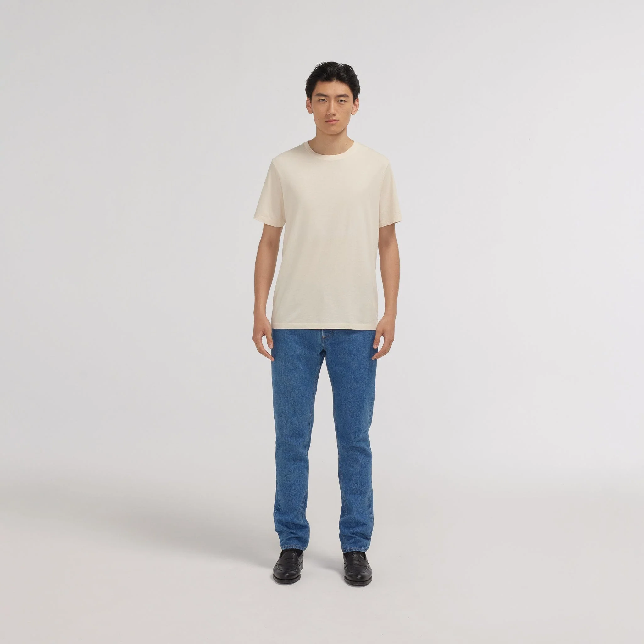 Un t-shirt en coton biologique certifié GOTS confectionné au Portugal, aux lignes épurées et au col rond classique, confortable et durable. Il est décliné en 4 couleurs, bleu marine, écru, blanc et gris chiné, qu’on portera volontiers tous les jours.