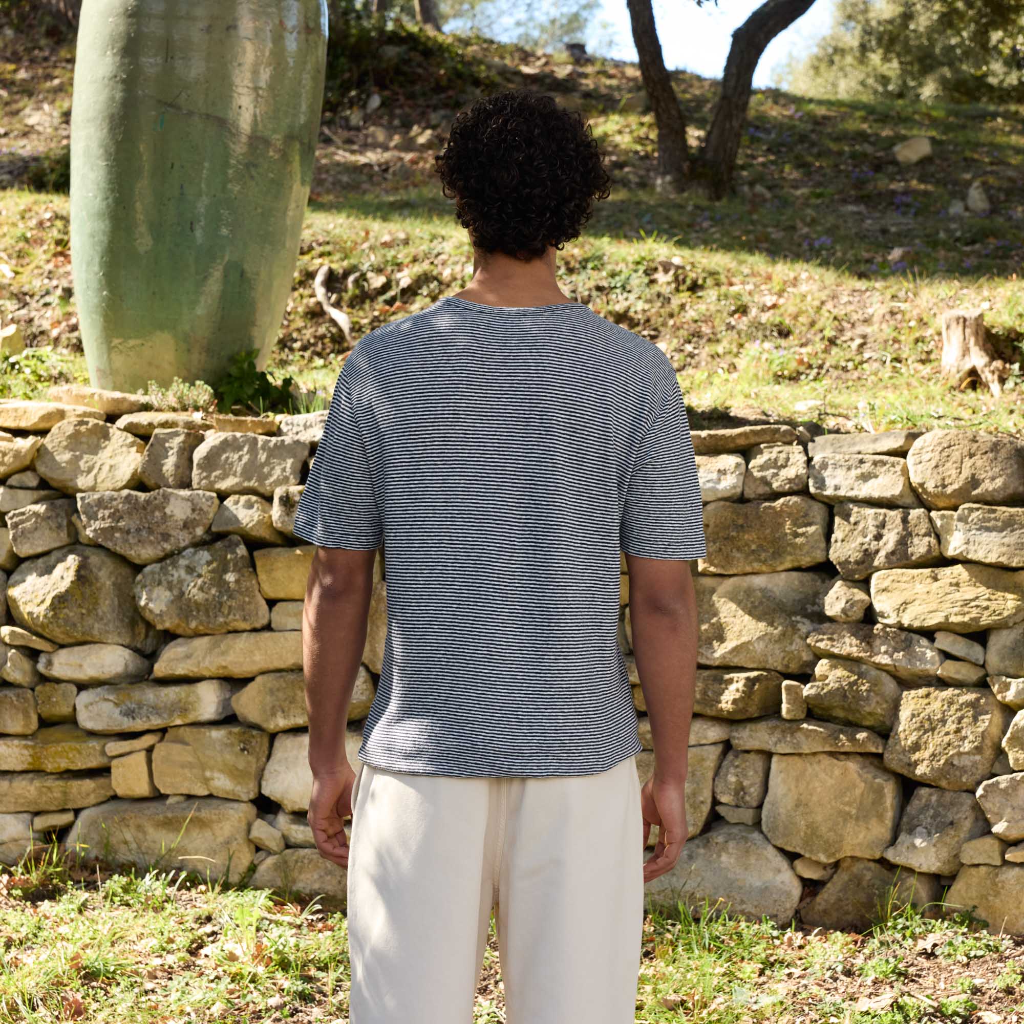 Fraîcheur et modernité se rencontrent pour ce t-shirt, confectionné dans un mélange de coton et de lin.