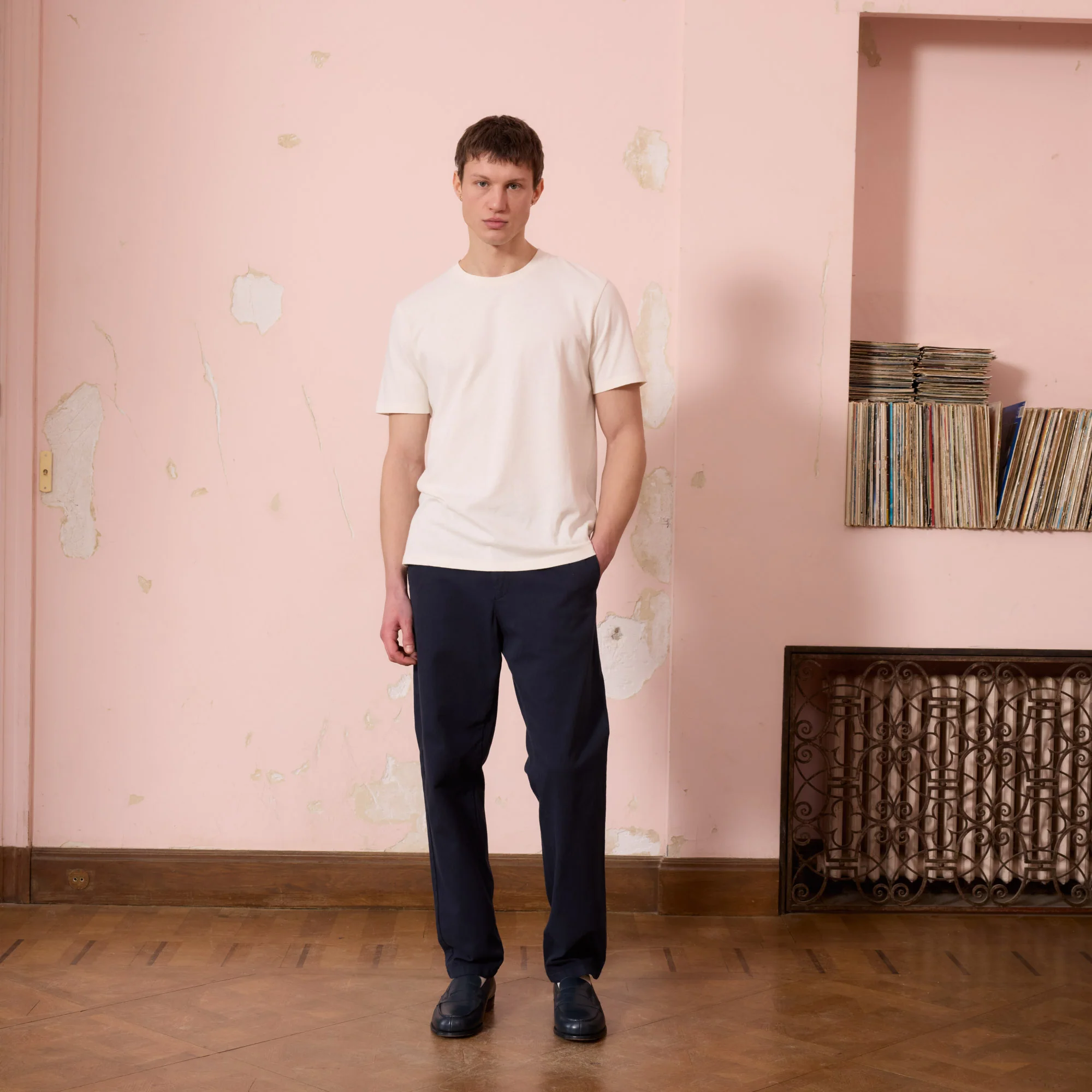 Un t-shirt en coton et lin qui n’a subi aucun traitement de teinture, d’où cette belle couleur écrue. Avec un poids de 235g/m2, le tissu est dense, tout en laissant passer l’air. La matière finale est généreuse, souple, confortable et durable. Bénéficiez d’une remise pour l’achat de deux t-shirts ou plus.