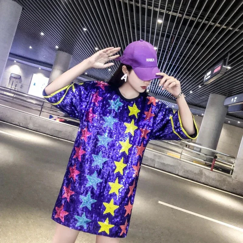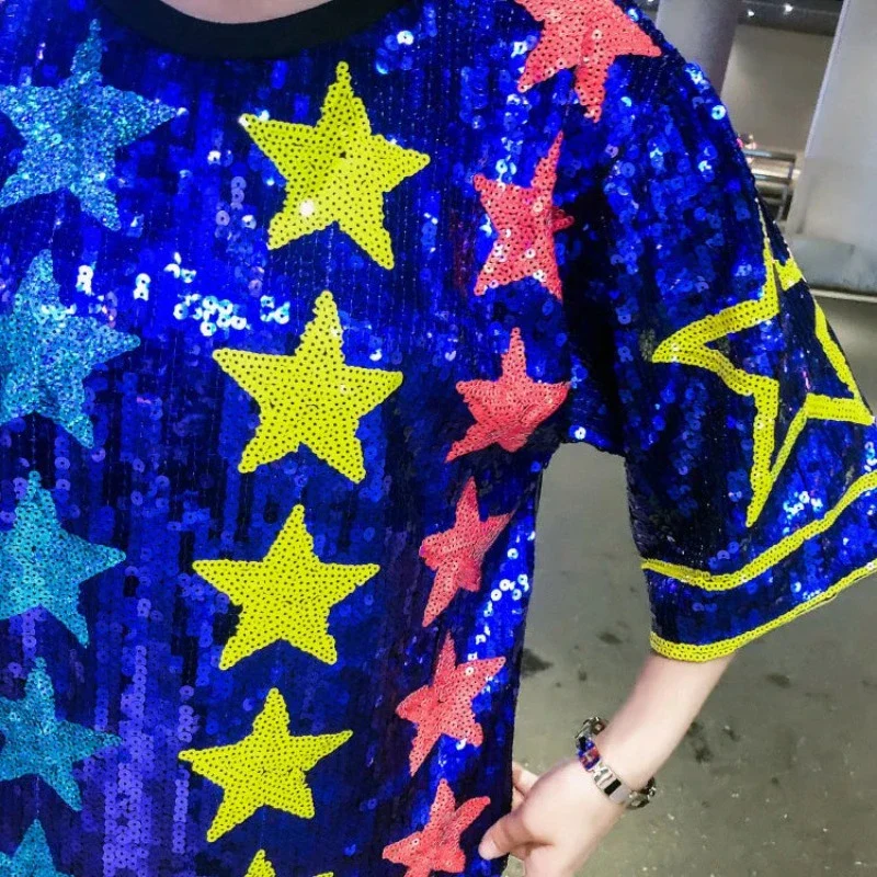 Laissez vous emporter par l’univers scintillant du t-shirt orné d’étoiles pailletées, une pièce exceptionnelle qui apportera une touche de magie à votre tenue. Avec sa coupe ample et décontractée, ce t-shirt over size garantit un confort inégalé, tandis que les étoiles pailletées apportent une touche d’éclat et de glamour.