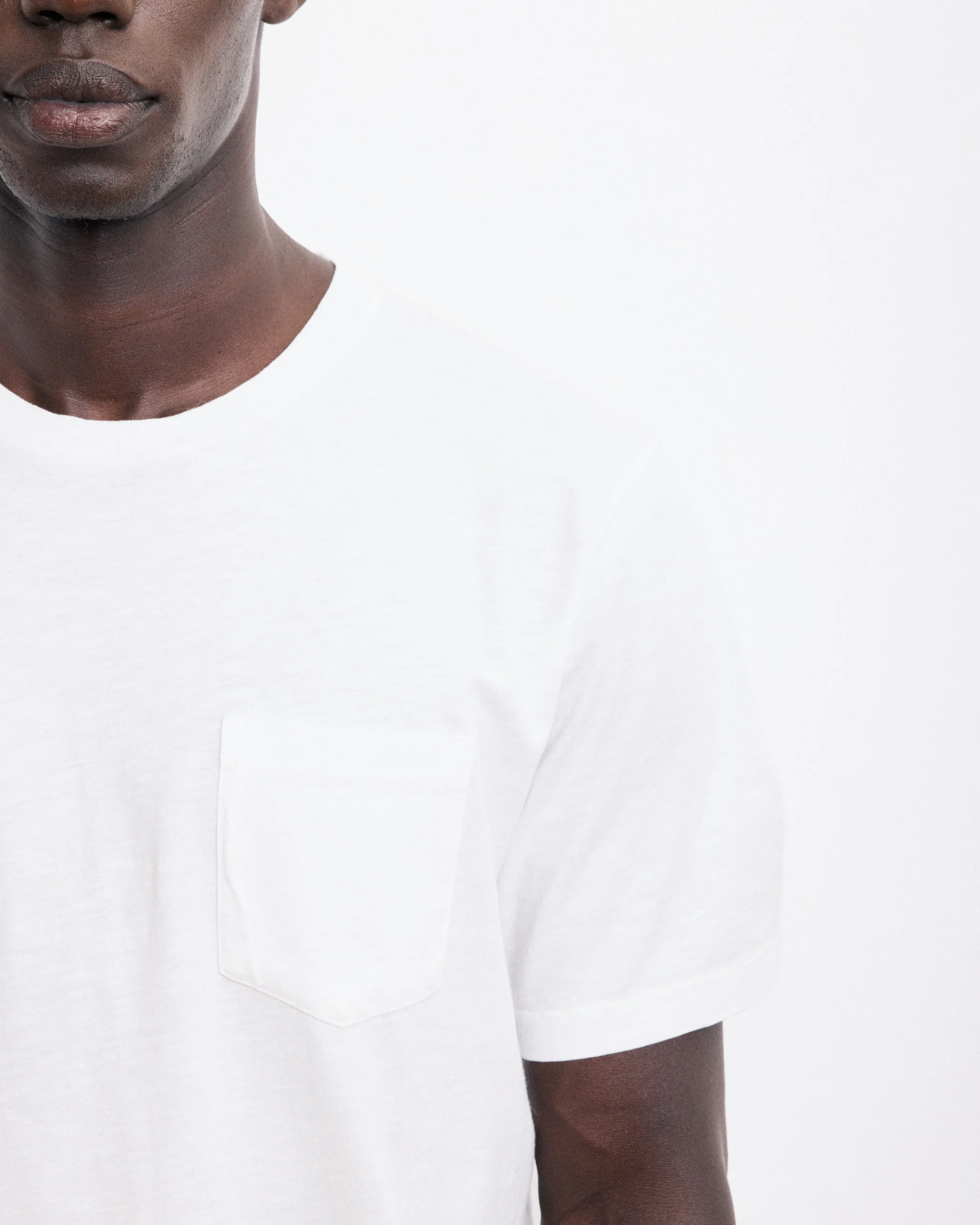 T-shirt Homme en Coton Slub Blanc Pocket Crew
