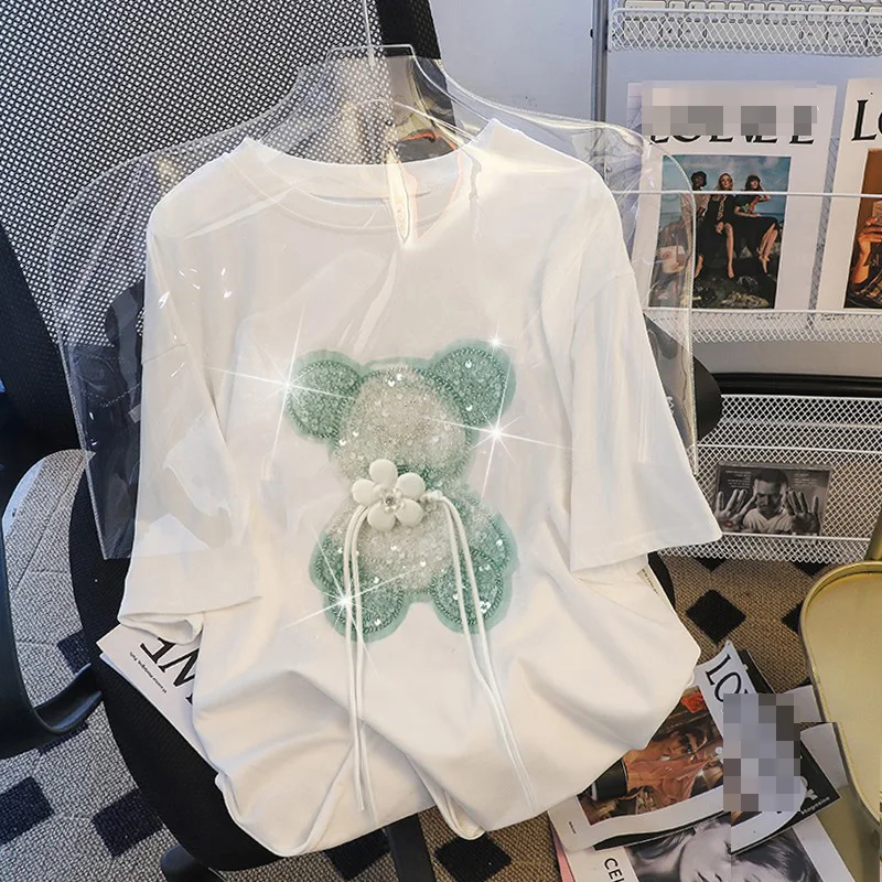 Vous allez adorer le t-shirt ours, il est mignon et glamour. Avec ce vêtement doux et confortable, vous pourrez le mettre avec toutes vos tenues du quotidien, et sa brillance illuminera votre journée. Plongez dans la délicatesse avec le t-shirt ours.