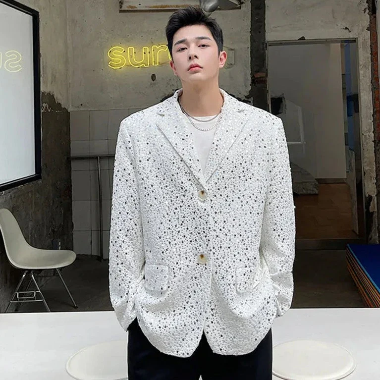 Cette veste blazer à paillettes pour homme est parfaite pour rehausser votre look lors d’une cérémonie, d’un mariage ou d’un dîner de gala. Sa coupe large et droite accentue votre carrure et vous donne une prestance incomparable. Recouverte de paillettes étincelantes, vous serez au centre de l’attention. Cette veste s’associe parfaitement à un ensemble noir pour un look chic et pétillant.