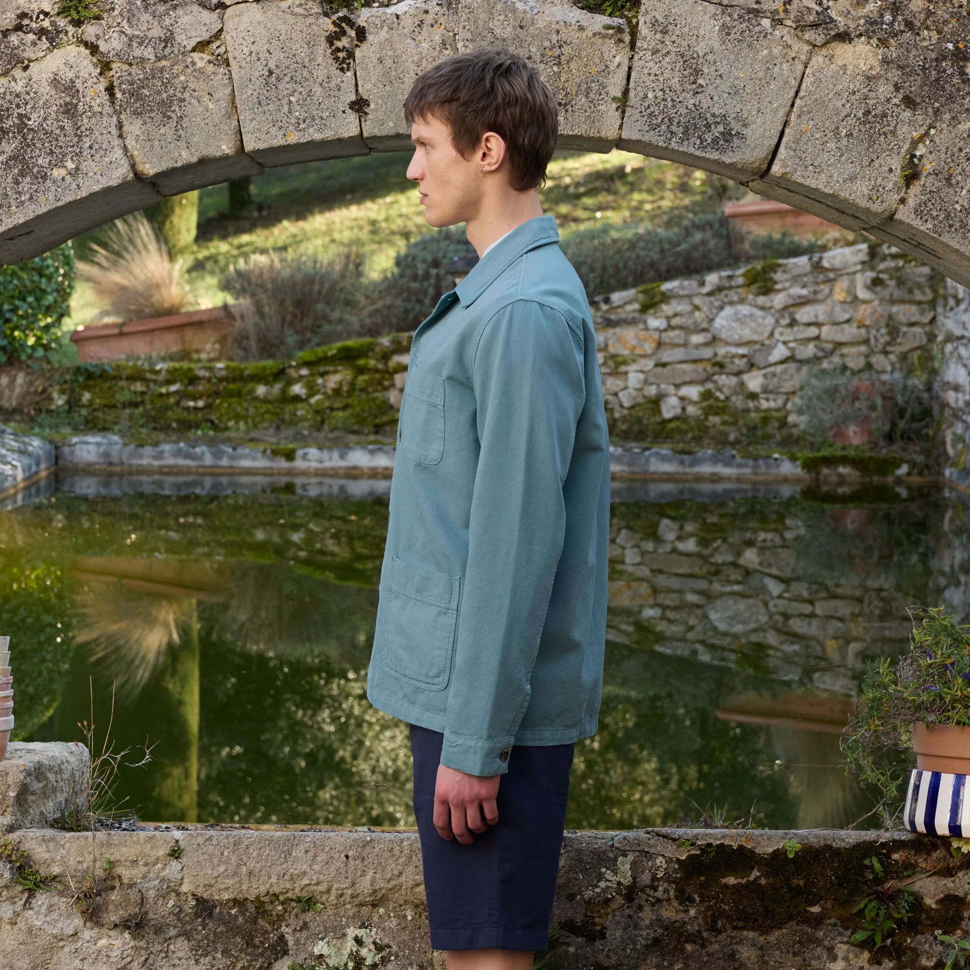 Cette veste de travail est confectionnée dans un très belle toile de coton de chez Velcorex, maison française réputée pour la qualité de ses tissus. Une pièce parfaite pour la saison.