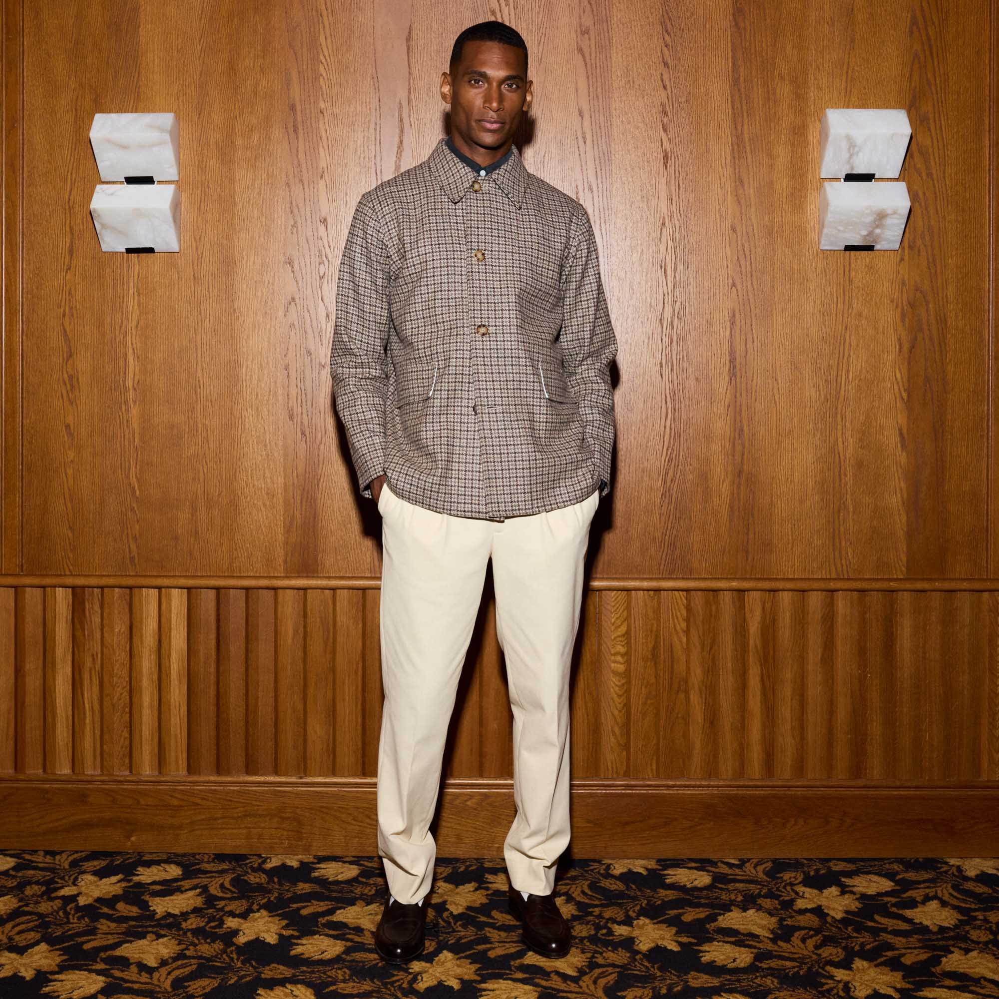 Cette veste de travail en laine italienne est inspirée d’un modèle français des années 50. Son col est généreux et ses fentes latérales ajoutent une sophistication discrète.