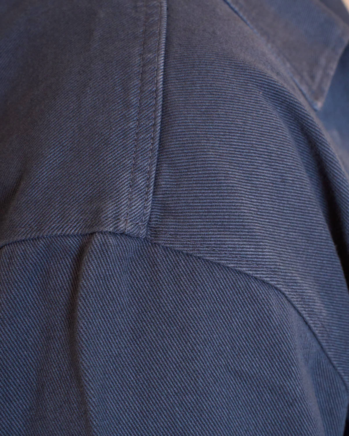 Veste de travail bleu marine en twill de coton. Une coupe droite, inspirée du vestiaire workwear avec trois poches plaquées et une poche intérieure portefeuille. Fabriqué à la demande au Portugal.
