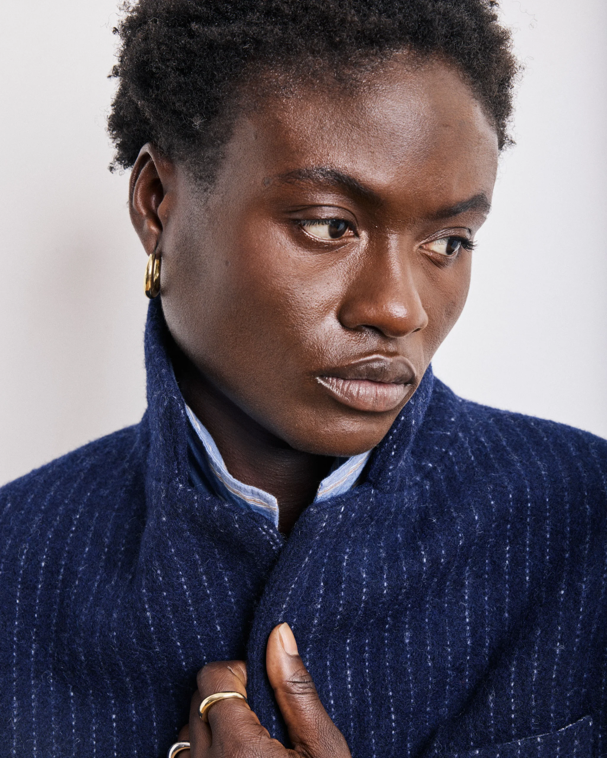 Veste blazer femme ample à col tailleur en laine à rayures tennis. Boutonnage simple à un bouton. Deux poches à rabat et fente d’aisance dans le dos. Doublure à rayures.