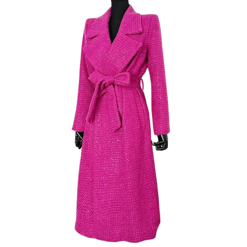 Optez pour l’élégance et la chaleur avec notre veste longue pailletée rose. Sa teinte intemporelle et sa texture douce en font un essentiel pour affronter les journées froides avec style et confort. Ce manteau rose élégant et raffiné est un incontournable de votre garde-robe.