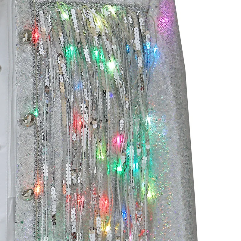 Le style décontracté de cette veste paillette et LED convient très bien aux jeunes ou aux non conventionnels. Les franges avec LED réfléchissantes montrent la tendance jeune de la mode, elle fera sensation les soirées festives. Vous allez briller en public et surtout la nuit. Vous obtiendrez d’innombrables éloges.