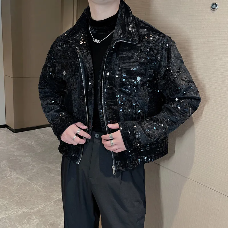 Vous ferez sensation avec cette Veste Paillette Homme Noir chic et scintillante. Vous aimerez son style vintage bombardier qui s’accordera avec toutes vos tenues. Idéal pour toutes les occasions, elle apportera une touche festive à votre look. Arborez une touche cool et sexy avec cette veste qui sera vous mettre en valeurs.