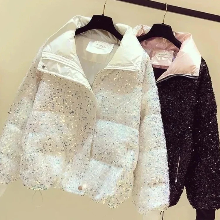 Cette veste matelassée et pailletée réinvente l’élégance du futur avec une touche de douceur. Munie d’un col montant, de manches longues et d’une fermeture zippée. Facile à mixer, elle s’associe à une robe et un cardigan.