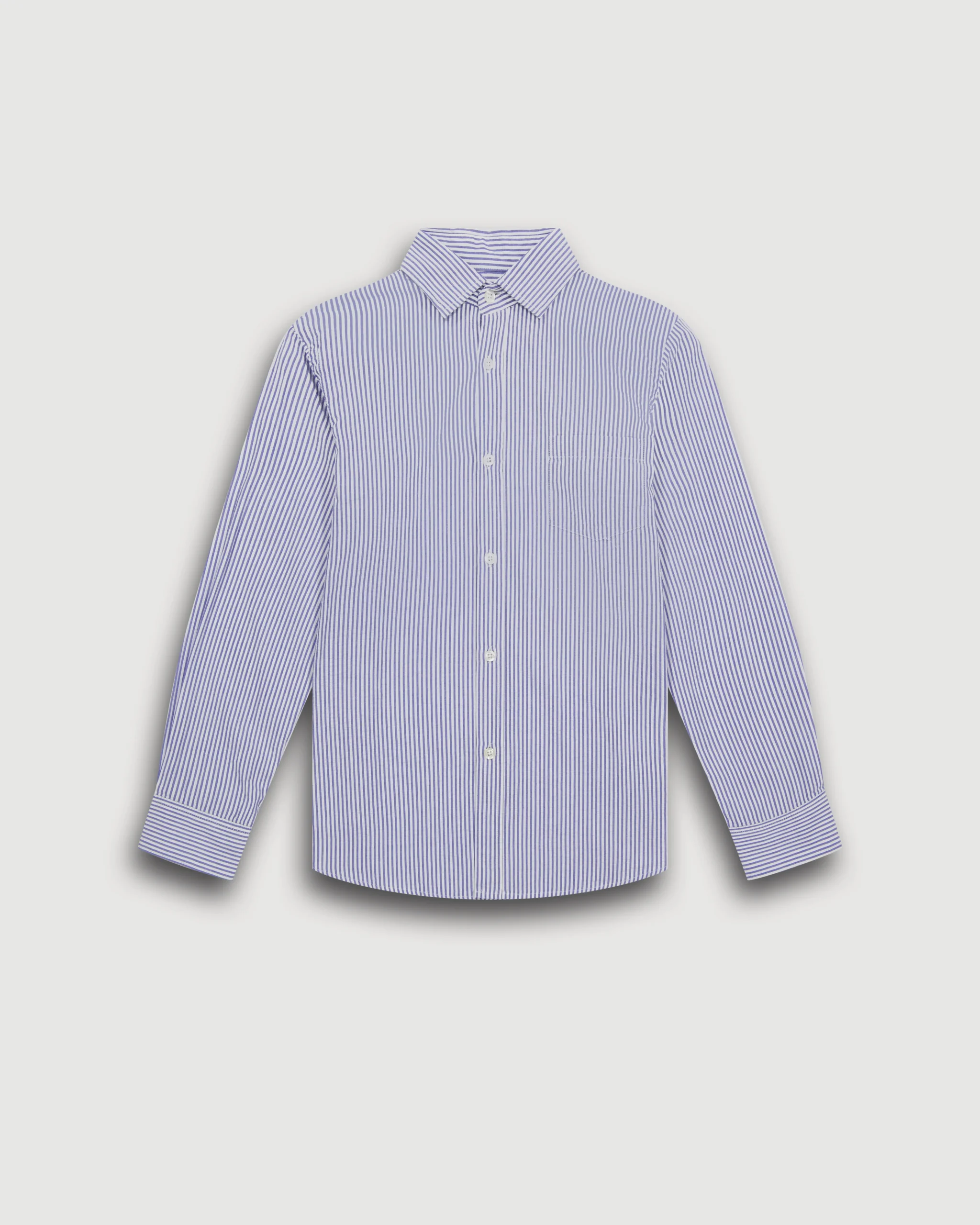 Chemise Garçon en Seersucker Rayé Bleu & Blanc Paul