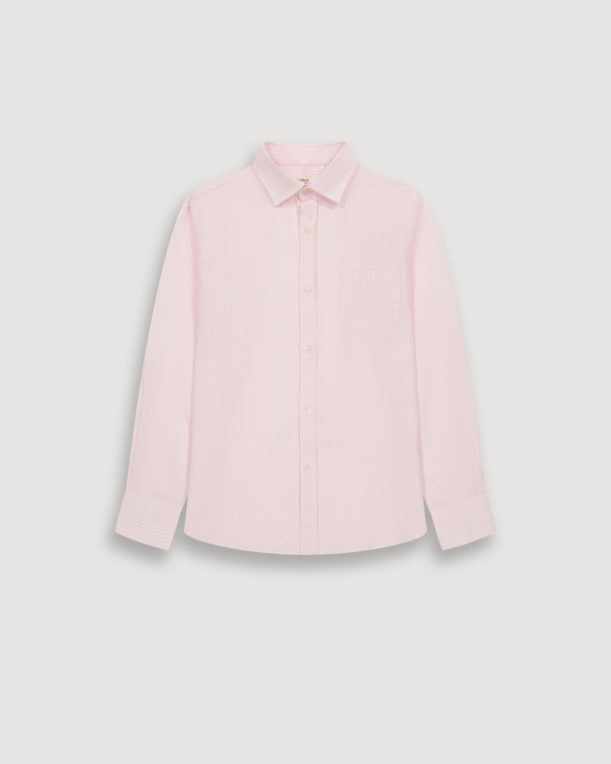 Chemise Garçon en Seersucker Rayé Rose & Blanc Paul
