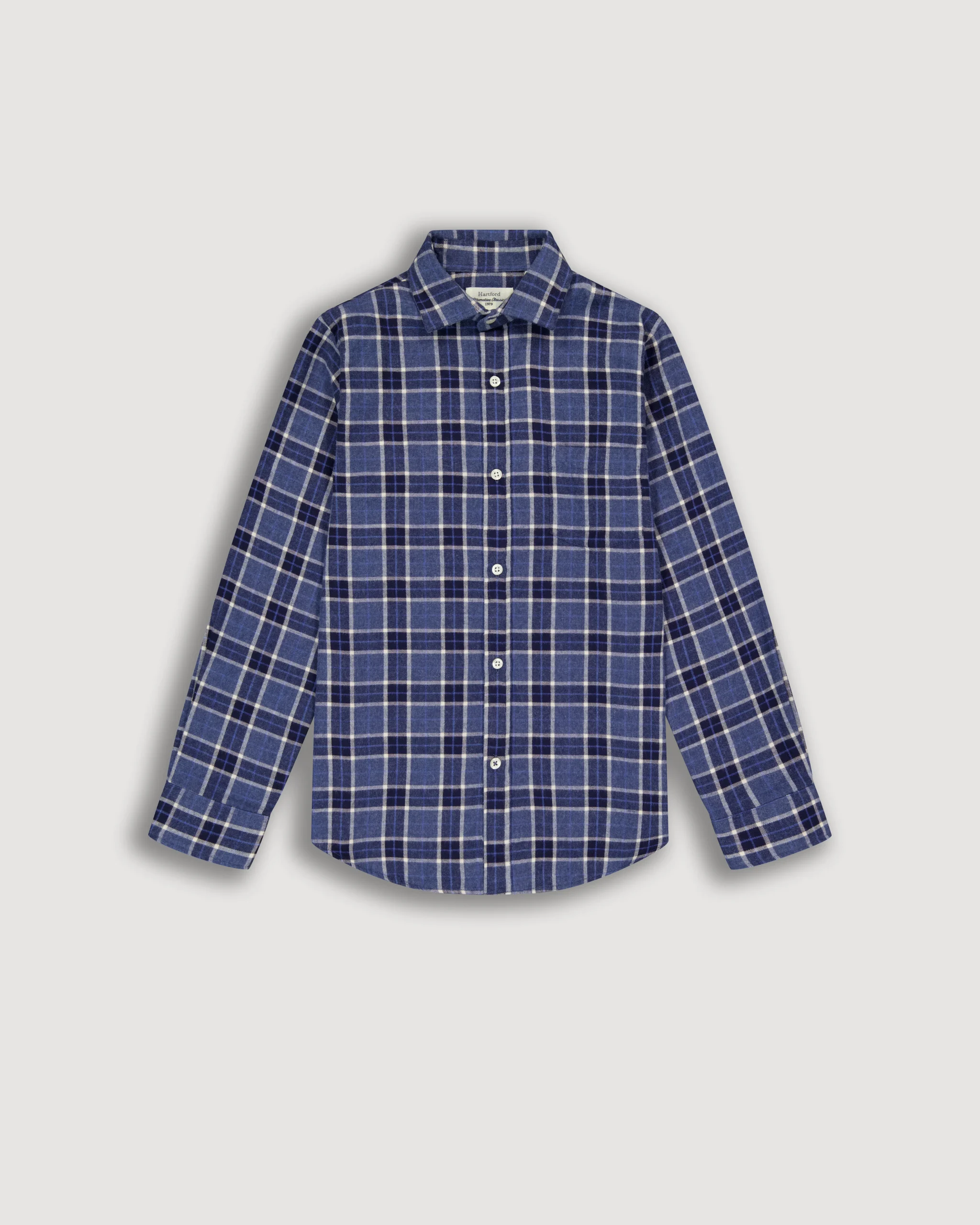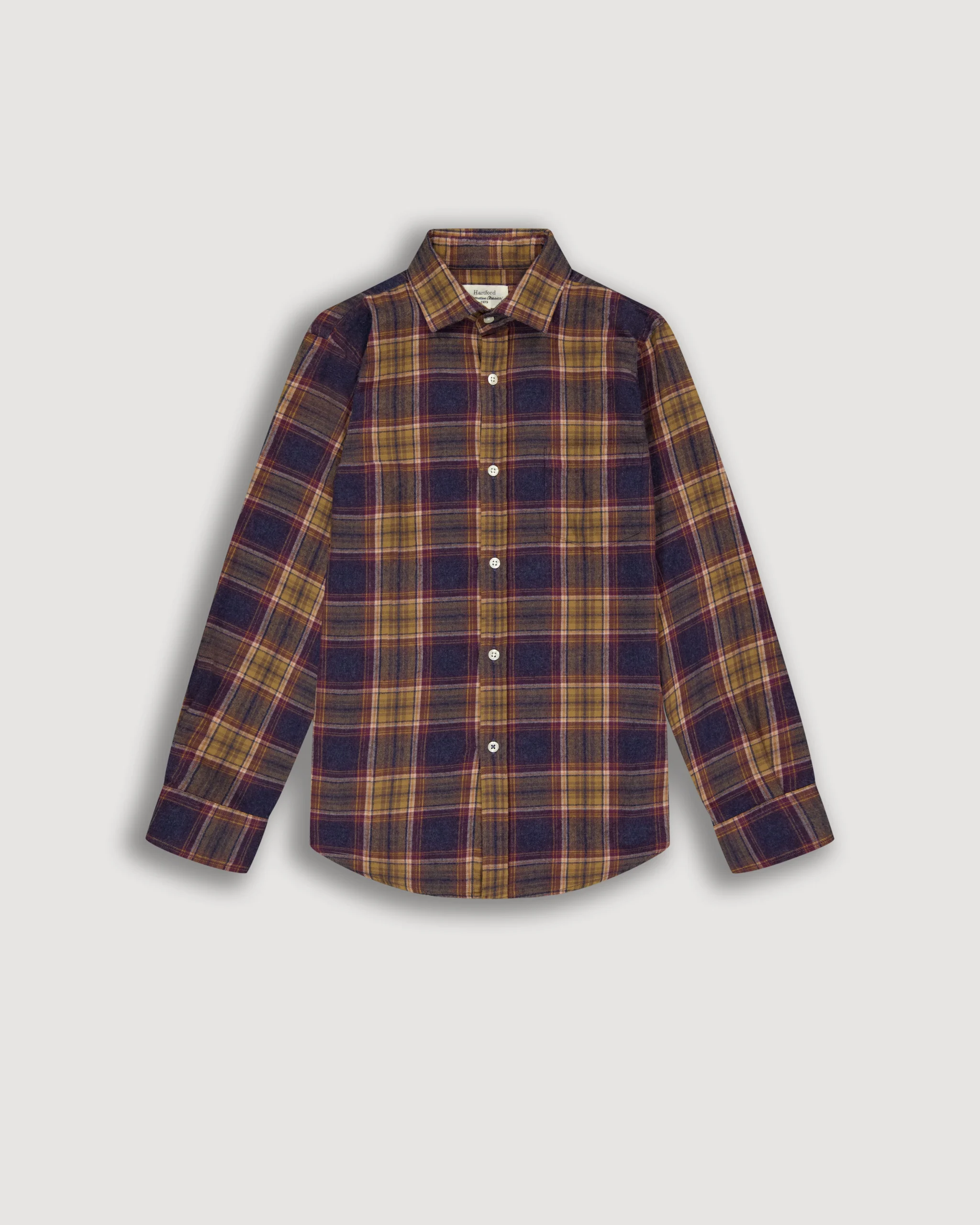 Chemise Garçon en Coton Brossé Tartan Bleu & Or Paul