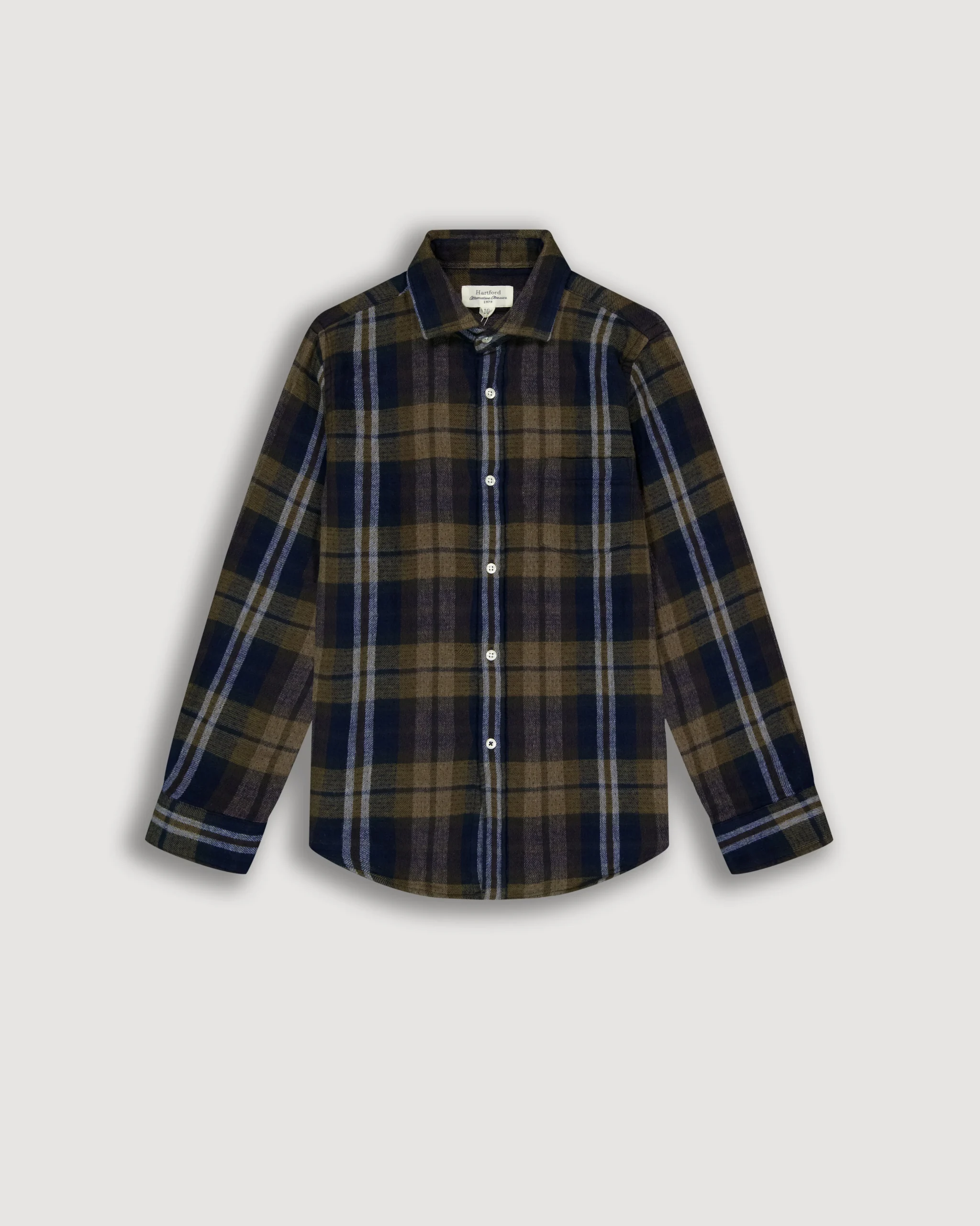 Chemise Garçon en Flanelle de Coton Double Face à Carreaux Vert Militaire Paul