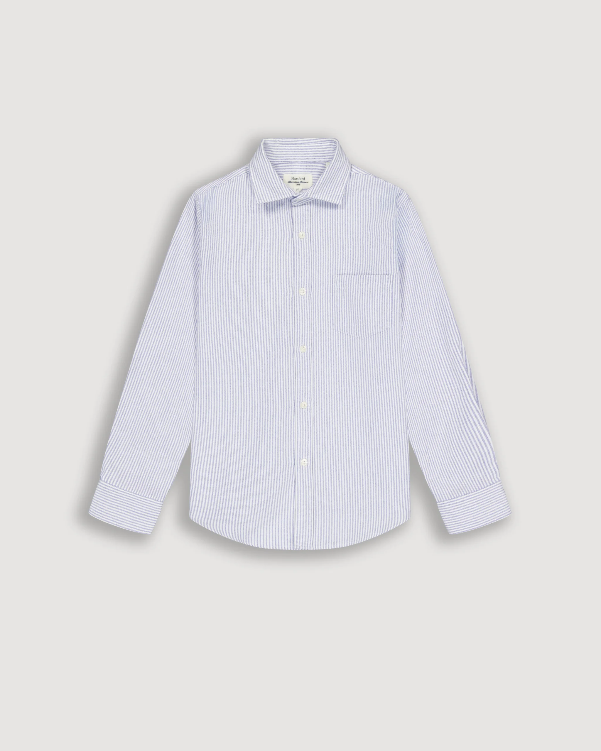 Chemise Garçon en Oxford Brossé à Rayures Bleu Pitt