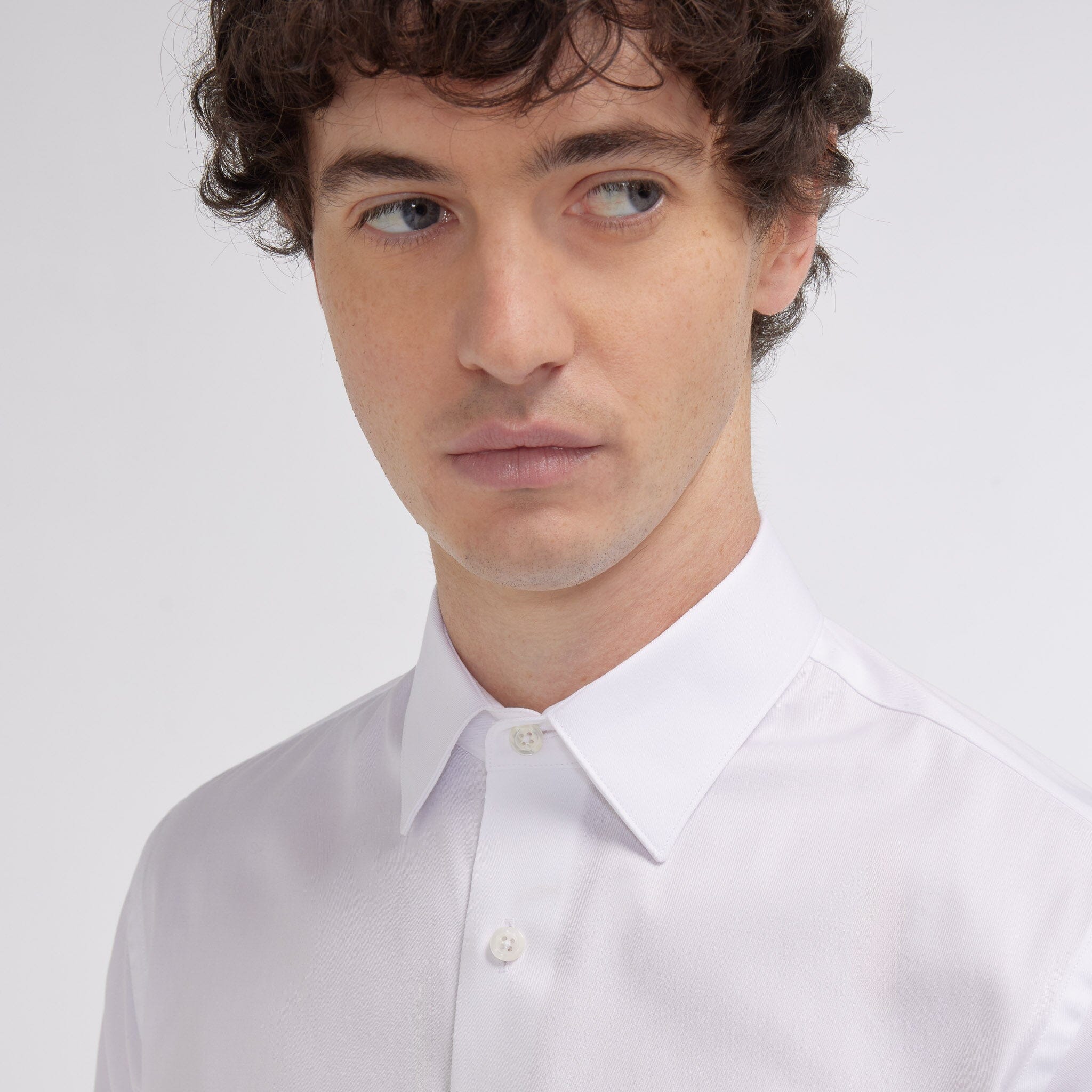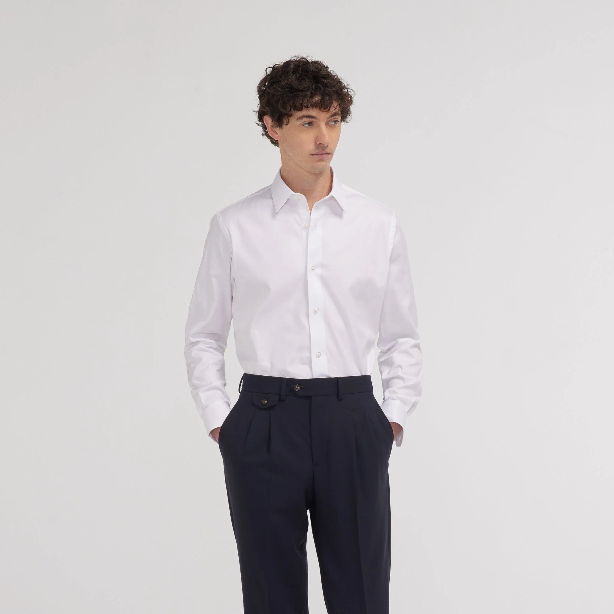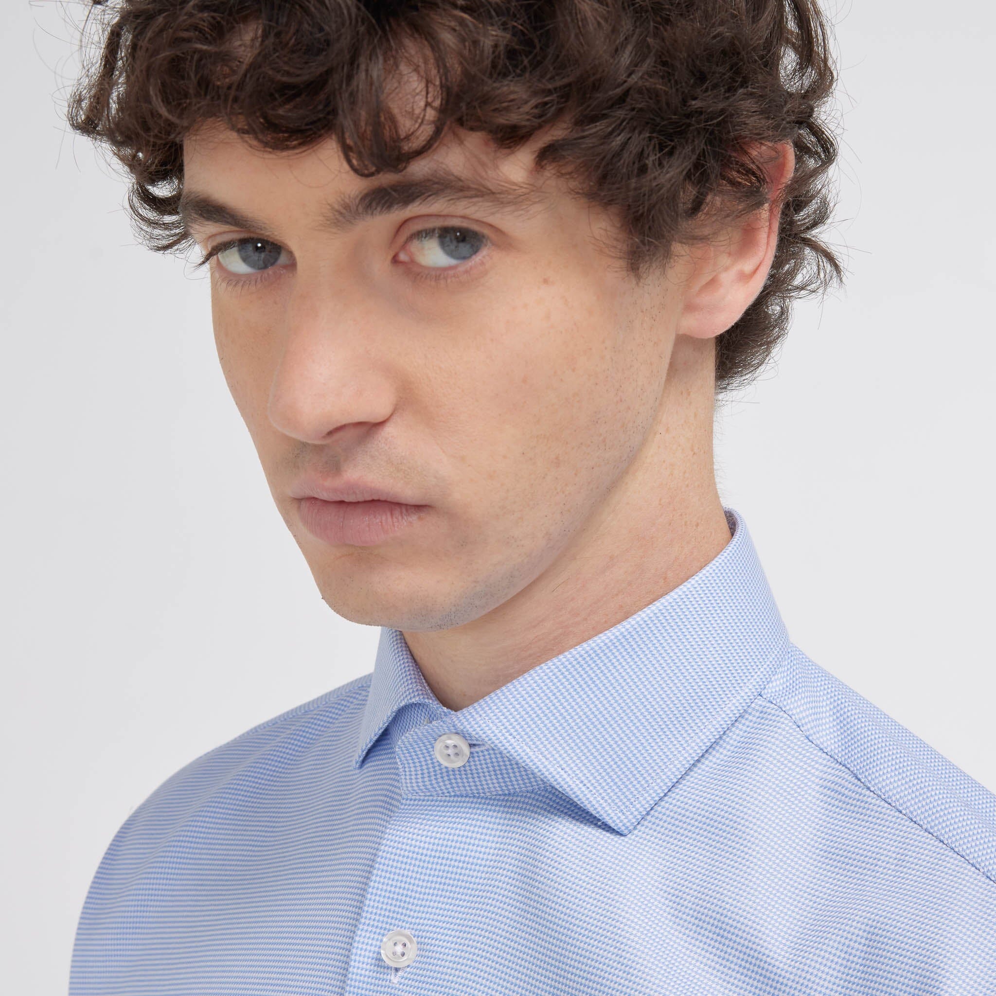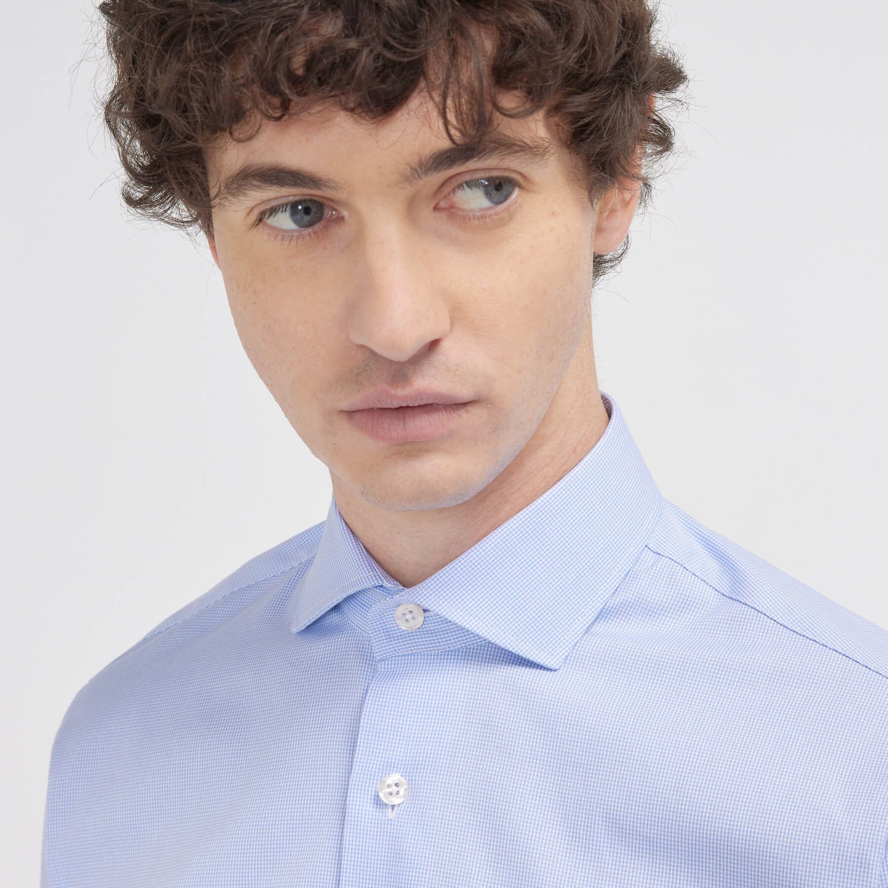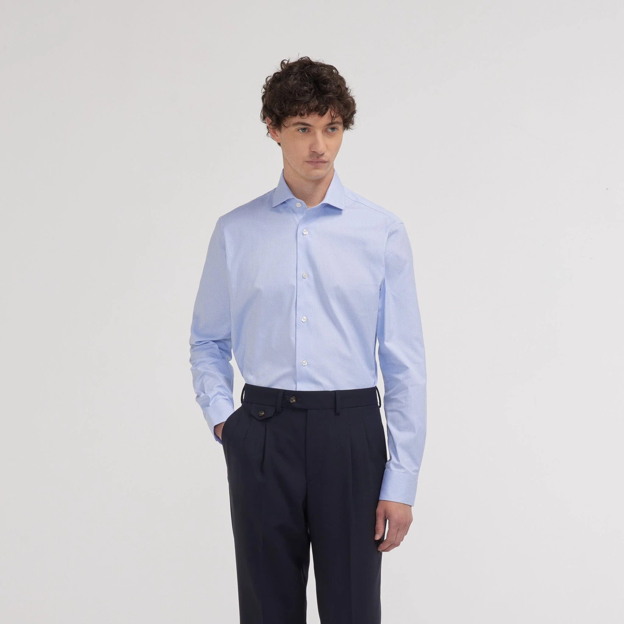 Chemise cintrée en popeline double retors à petites rayures bleu ciel