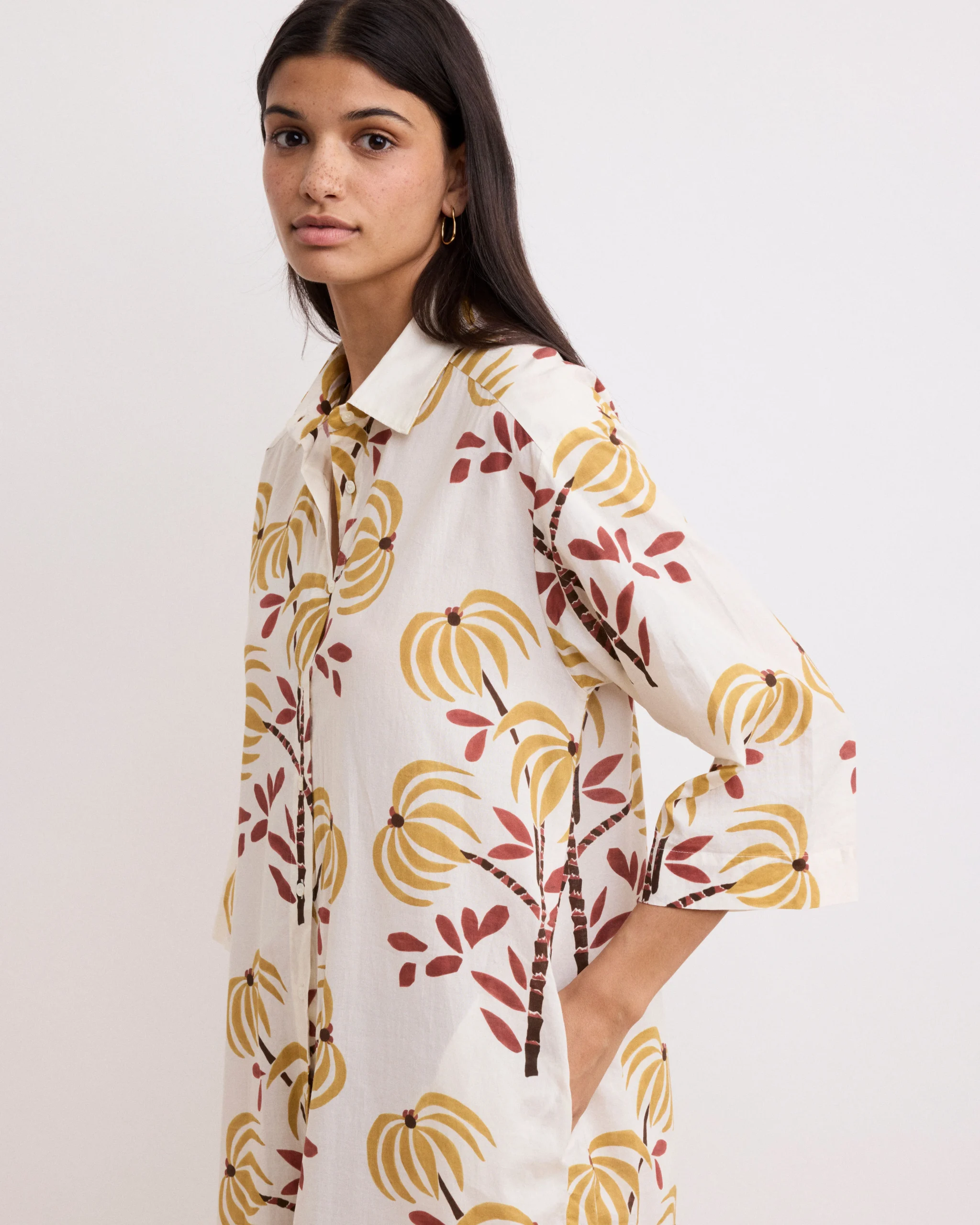 Robe Femme en Coton Imprimé Palmiers Doré & Marron Rune