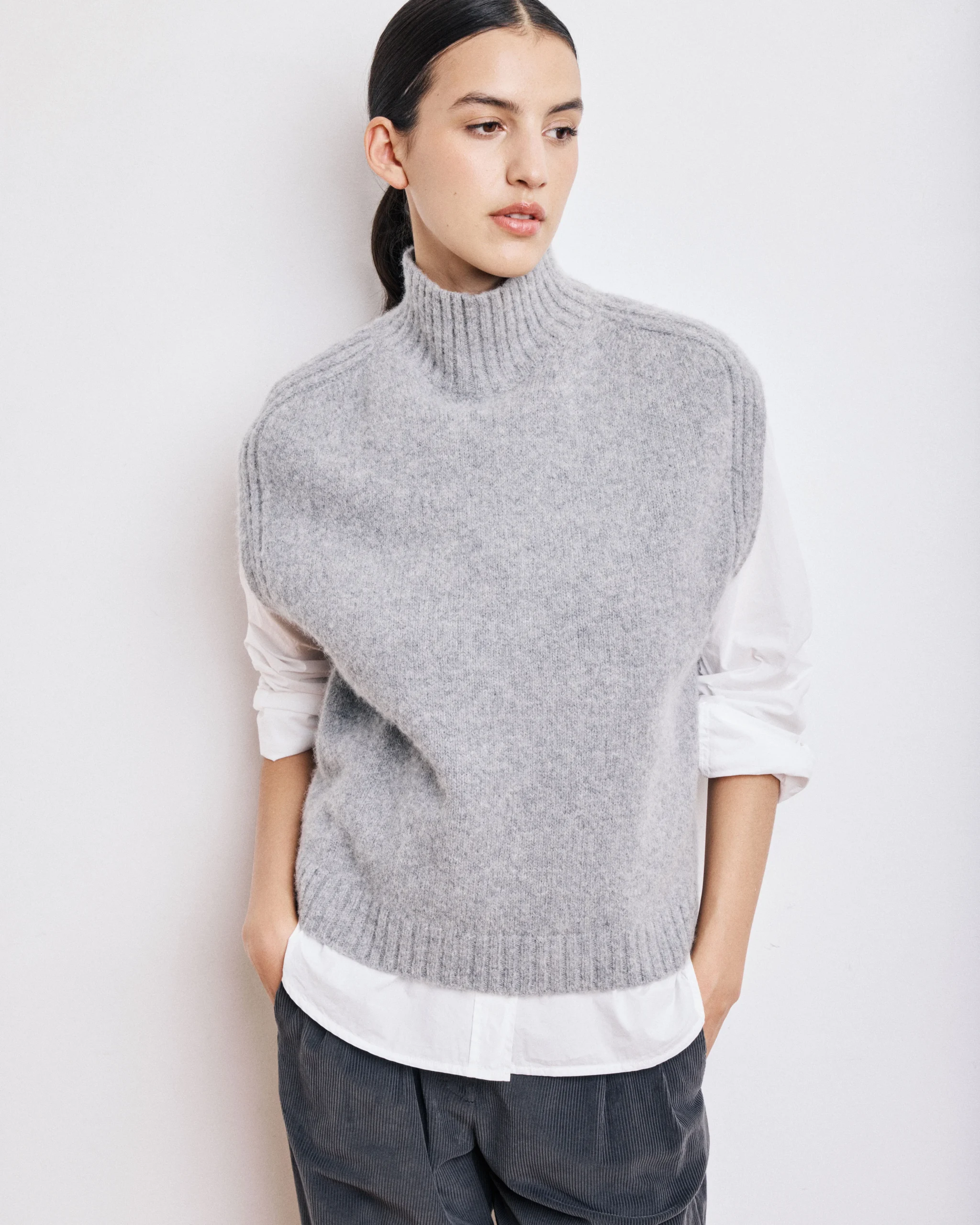 Pull Femme en Yak & Alpaga Gris chiné Mylene