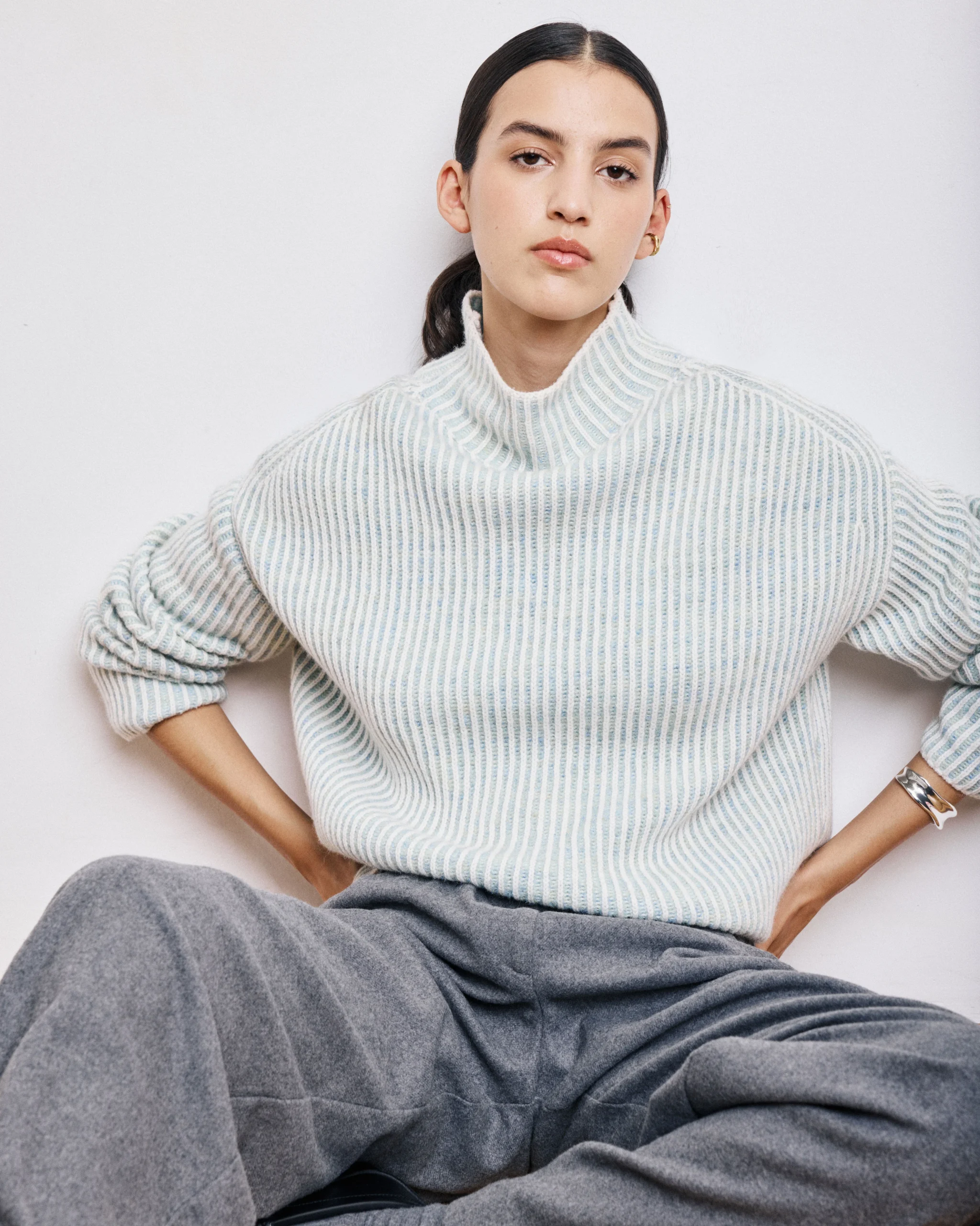 Pull Femme en Laine Mérinos Côtelée Ecru & Vert Jade Myatis