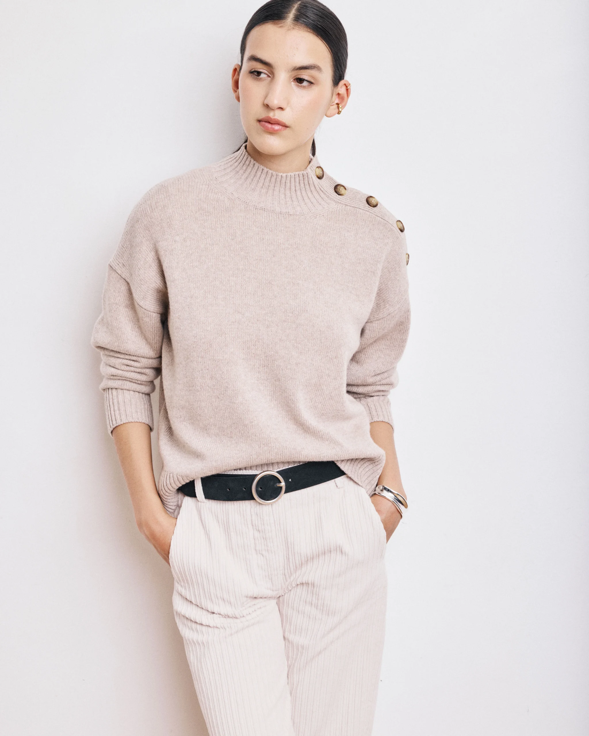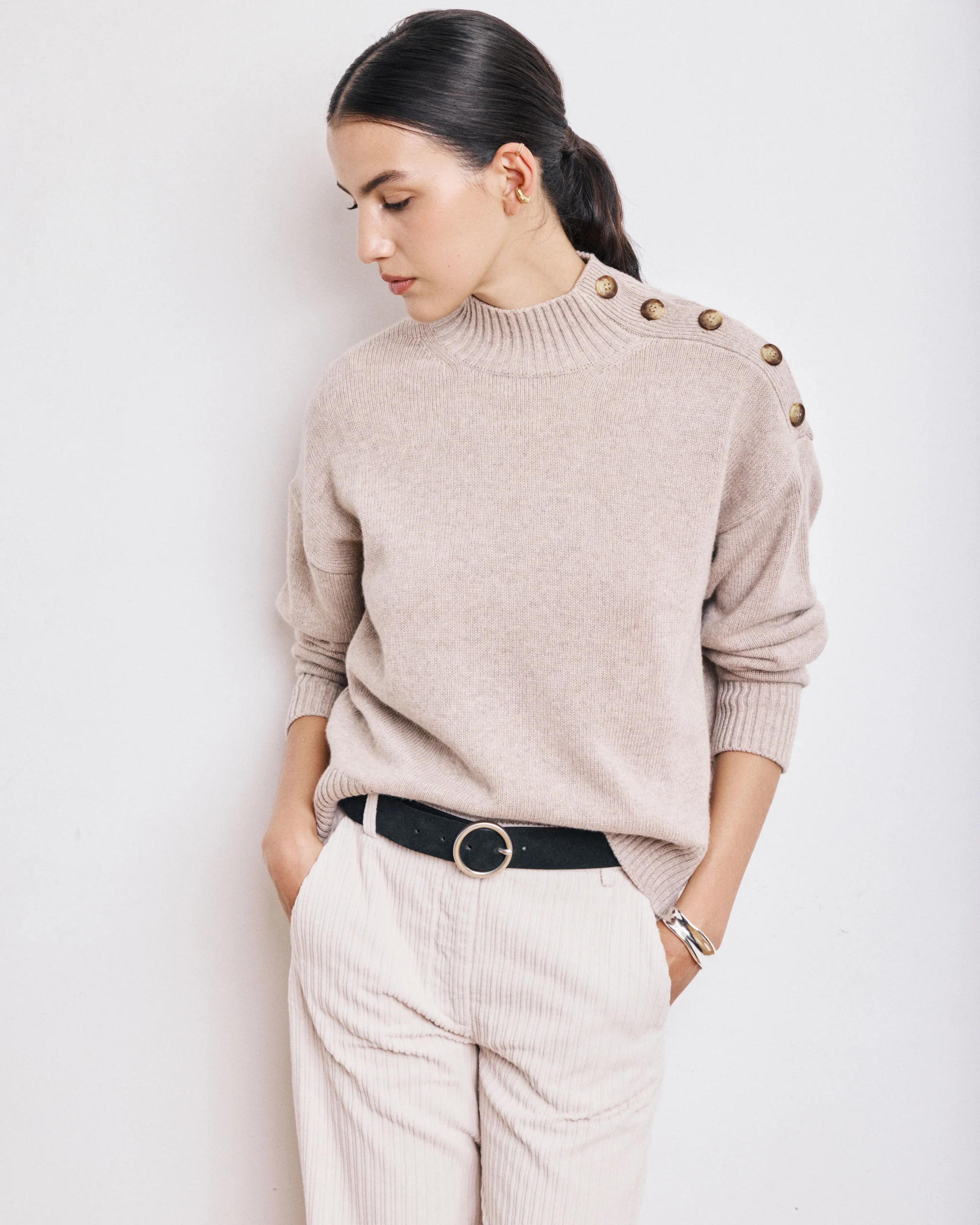 Pull Femme en Laine, Viscose & Cachemire Beige Mystic