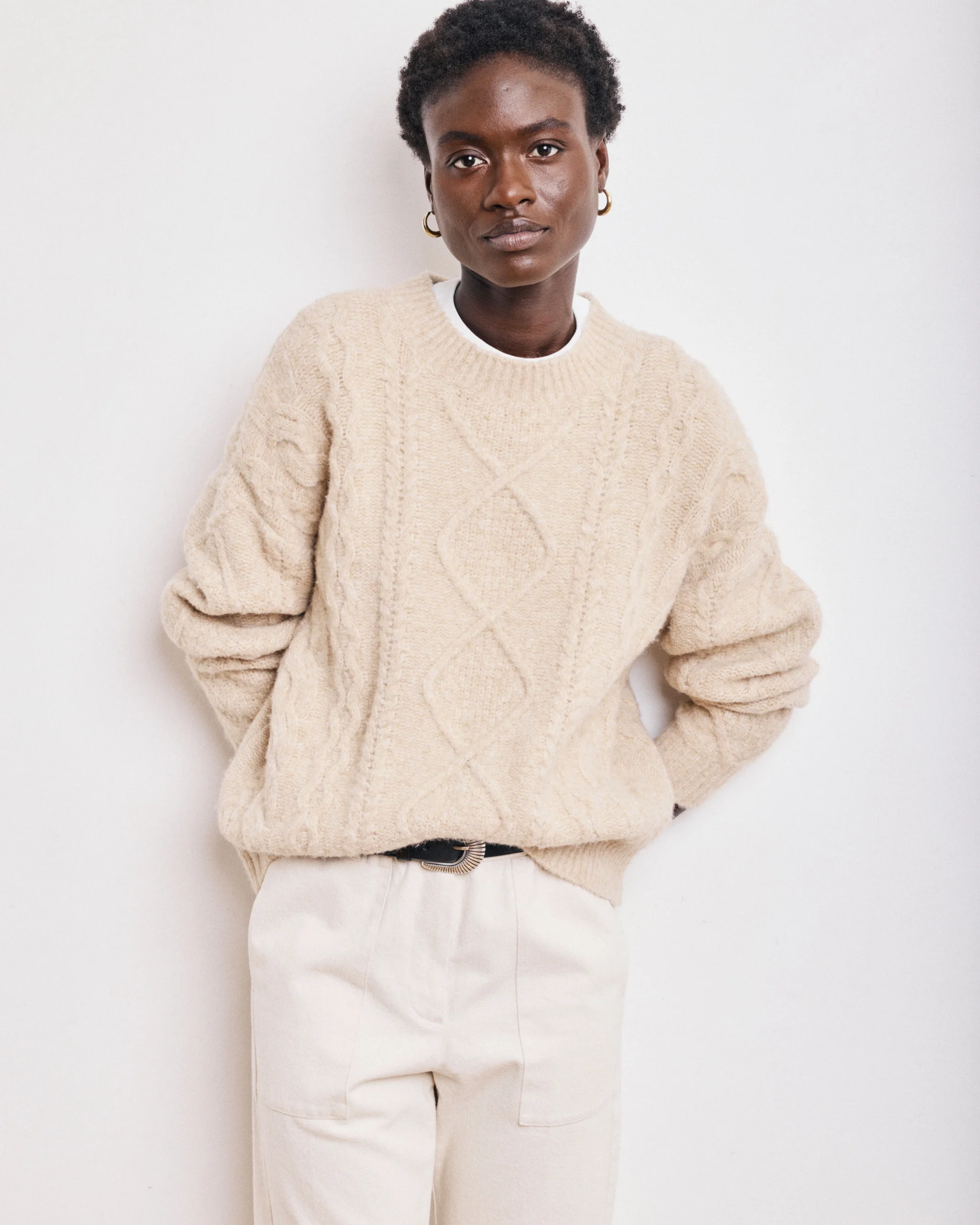 Pull Femme en Yak & Alpaga Naturel Maeva