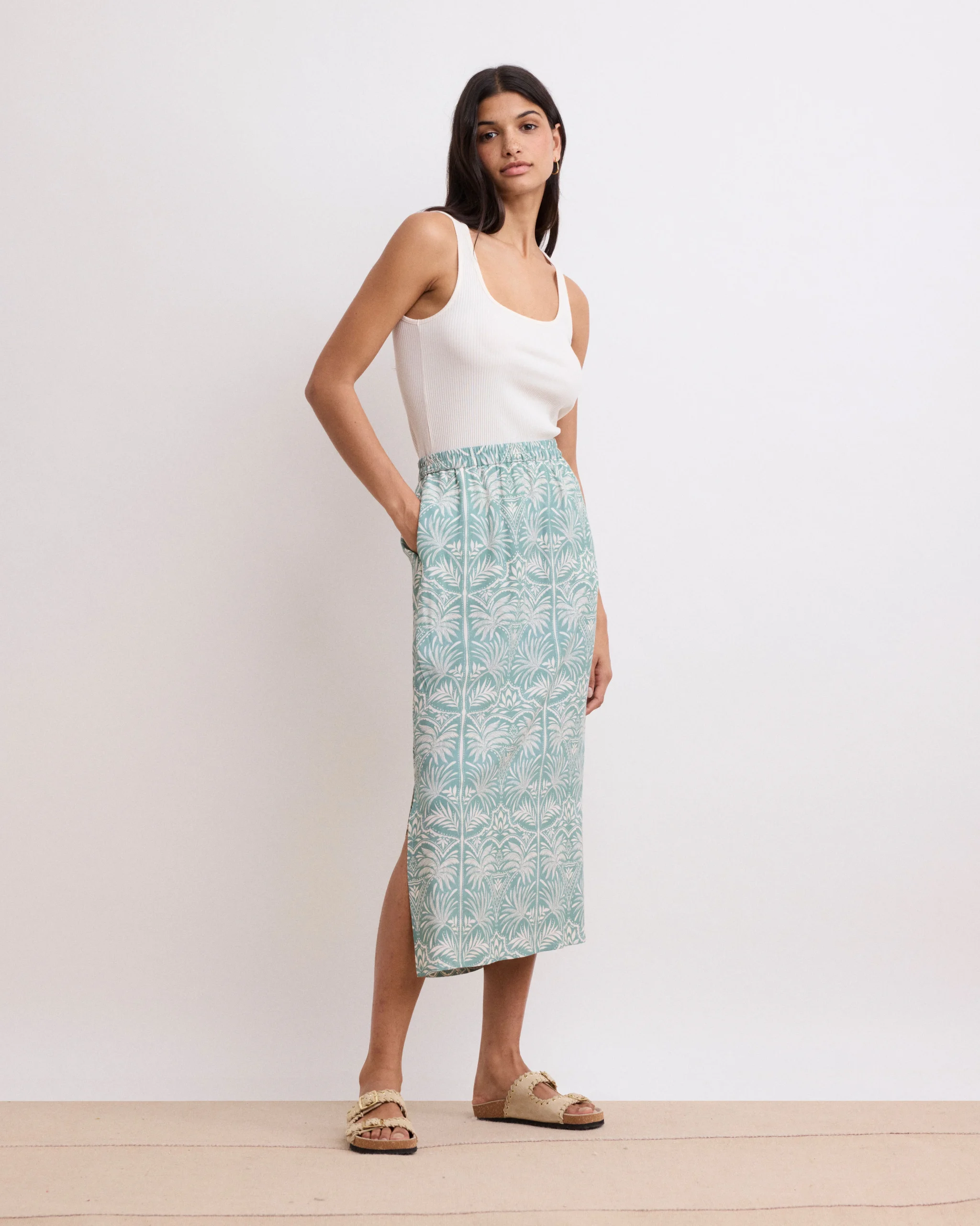 Jupe Femme en Viscose Imprimé Palmiers Vert Jetty