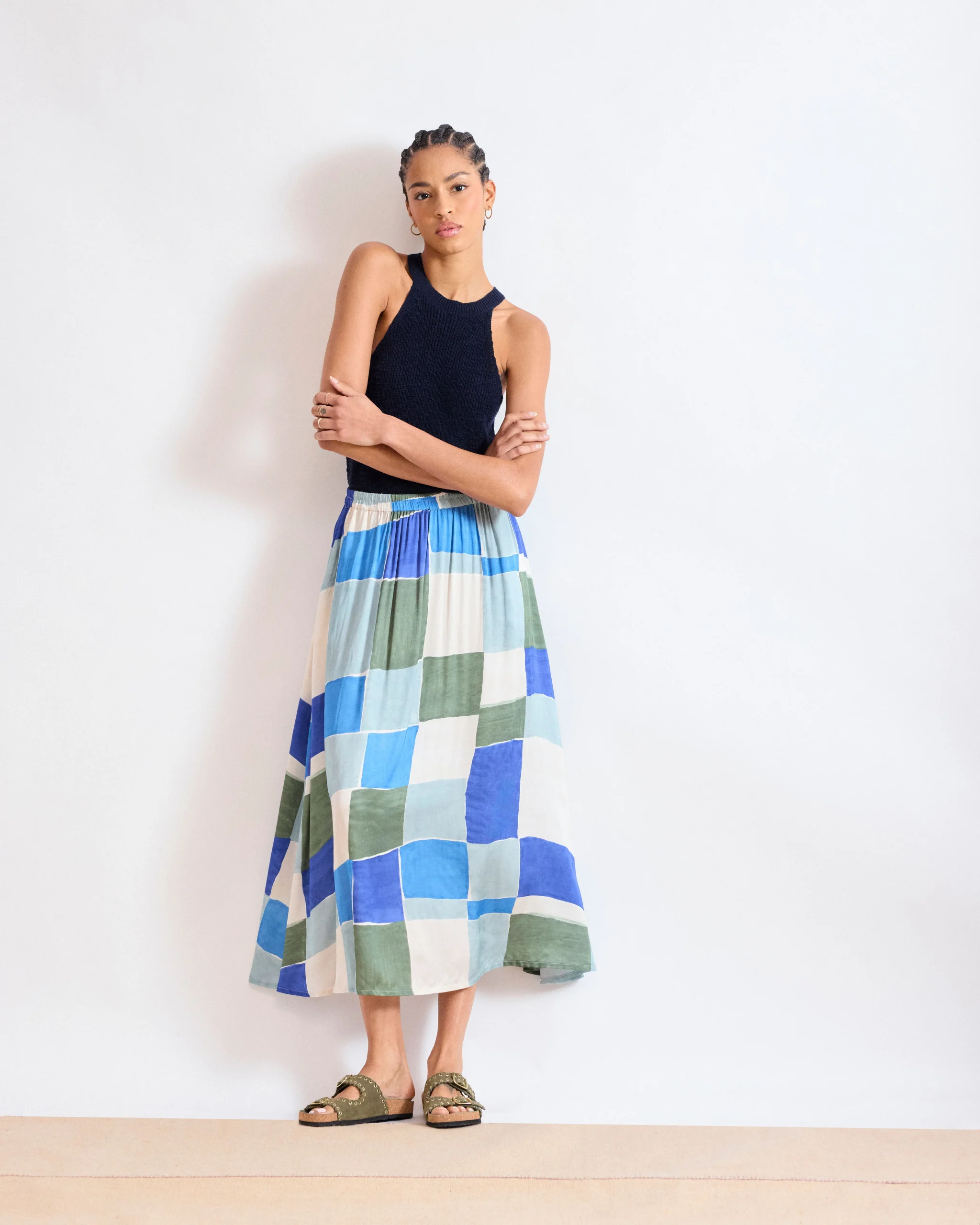 Jupe Femme en satin de viscose Imprimé géométrique Bleu Jovana