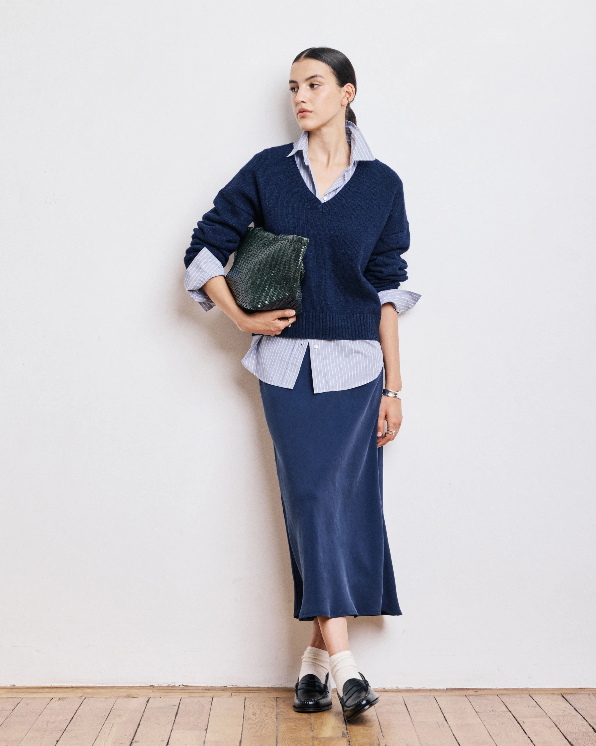 Jupe Femme en Laine Double Face Bleu Marine Jody