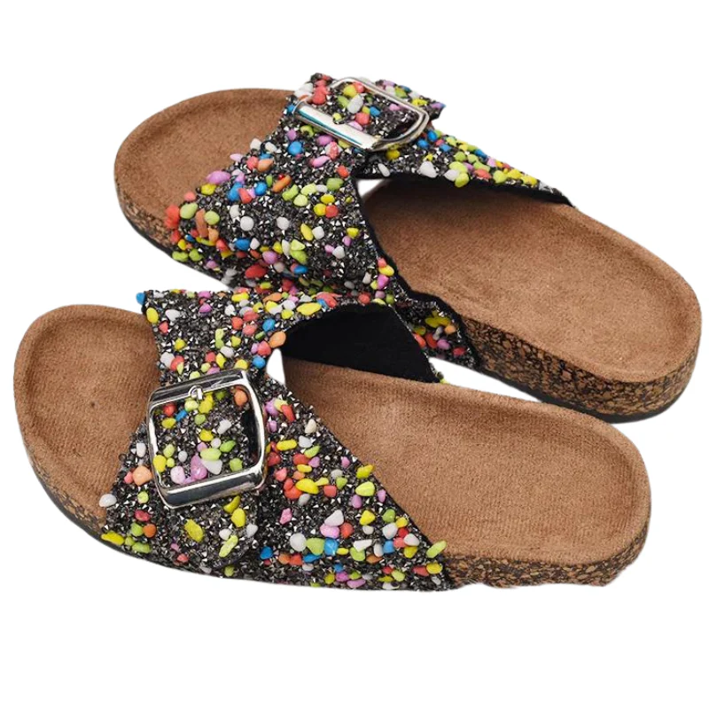 Mocassin Fourrure Pailleté Perles Noeud Papillon