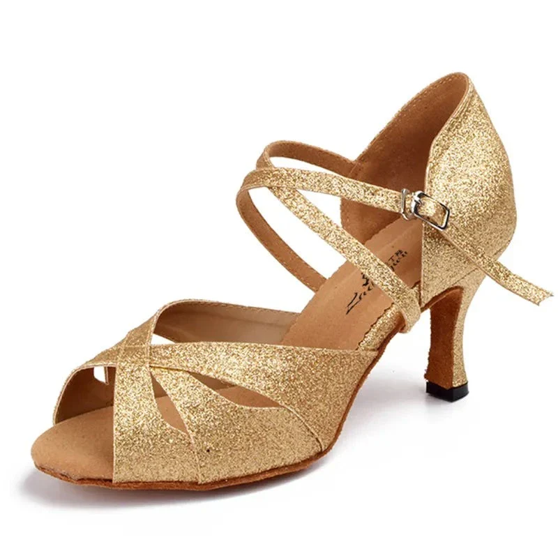 Sandales Paillettes Dorées Talon Haute
