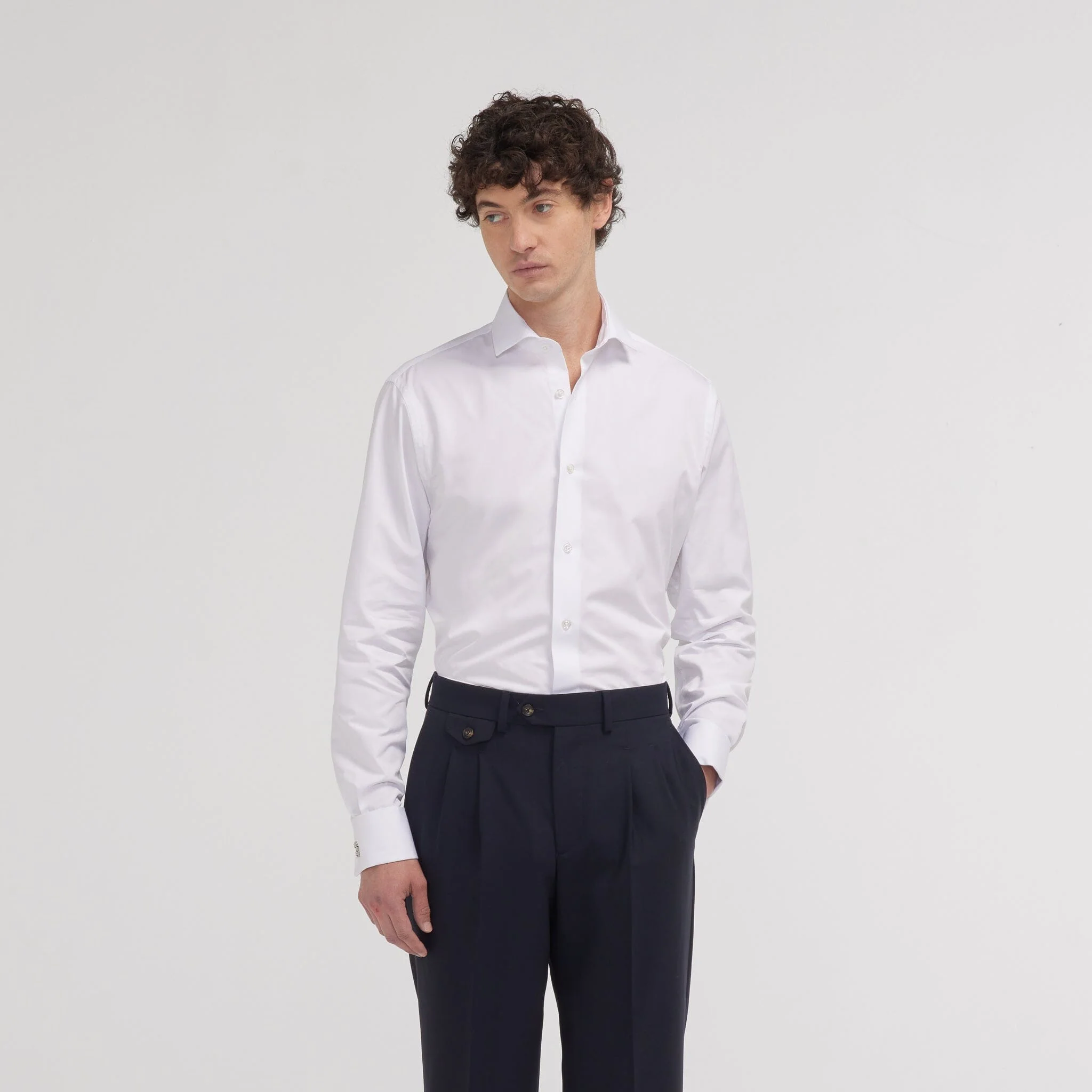 Chemise cintrée en popeline double retors blanche à poignets mousquetaires