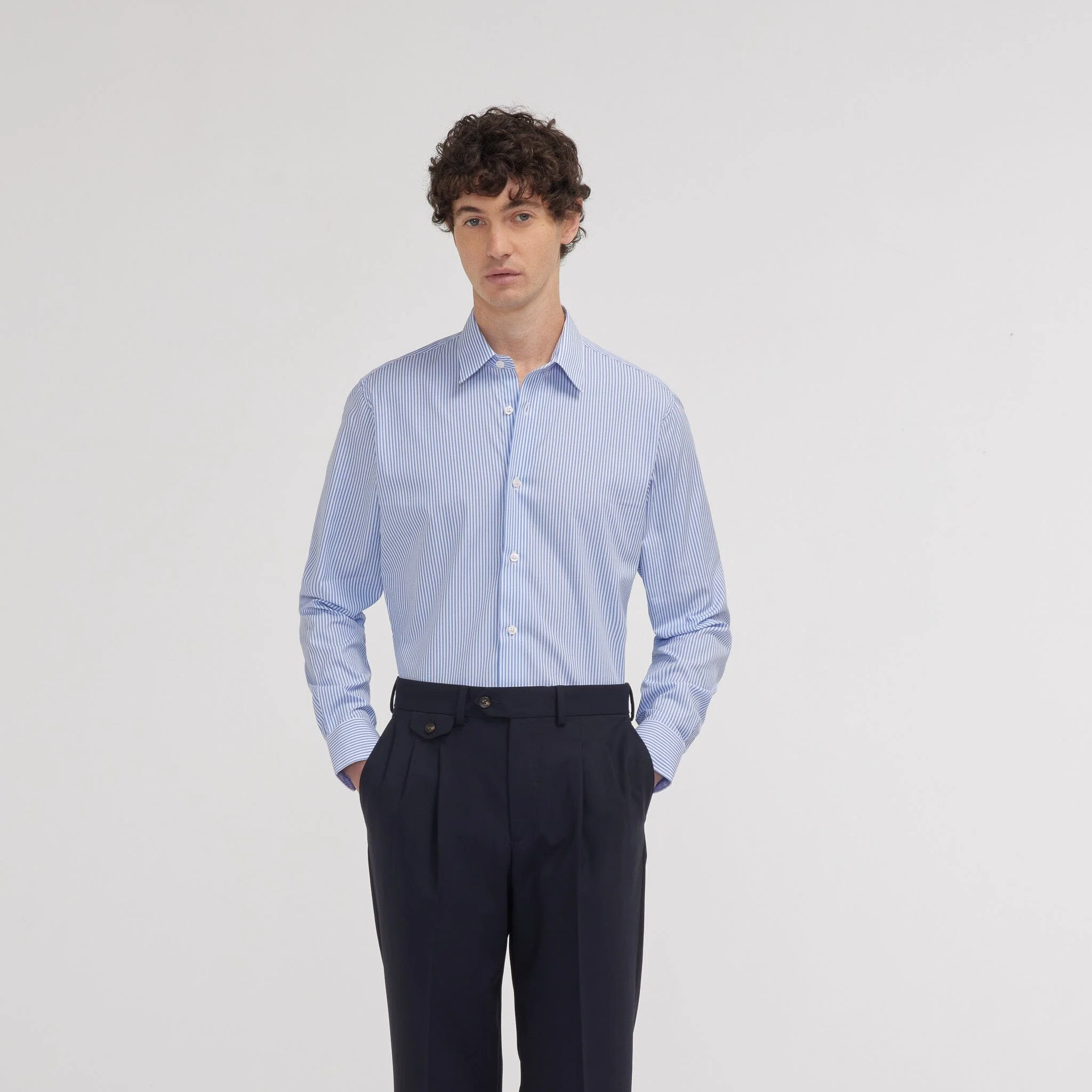 Chemise cintrée en popeline double retors à petites rayures bleu ciel