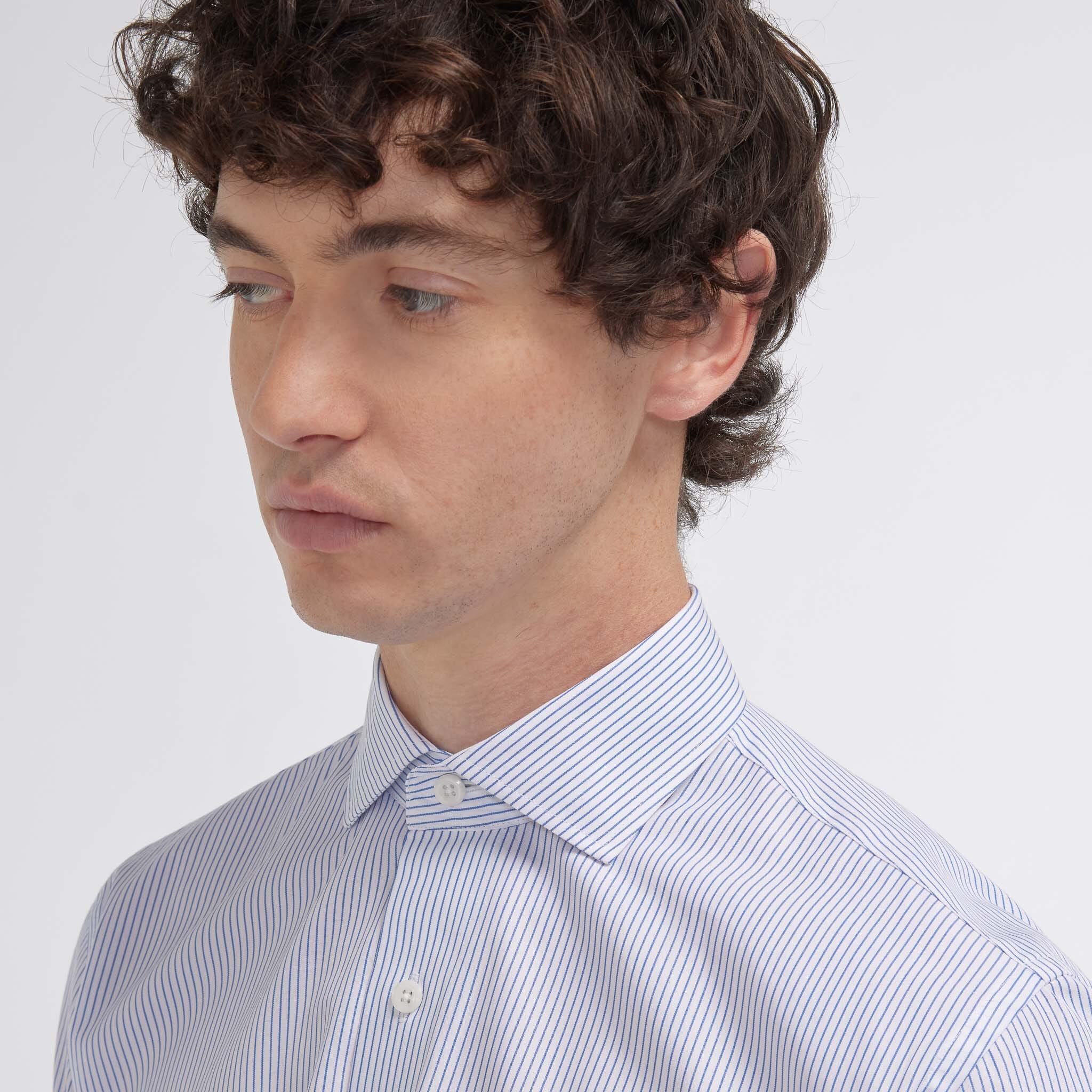 Chemise cintrée en popeline double retors à rayures bleu ciel et blanches