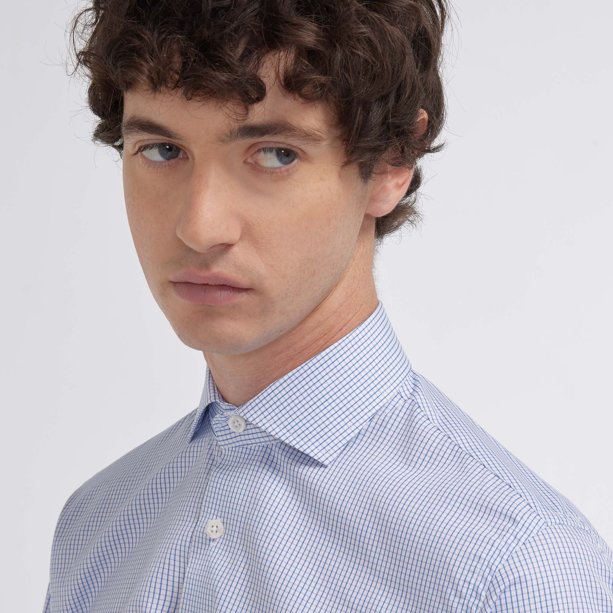 Chemise cintrée en popeline double retors à carreaux bleu foncé
