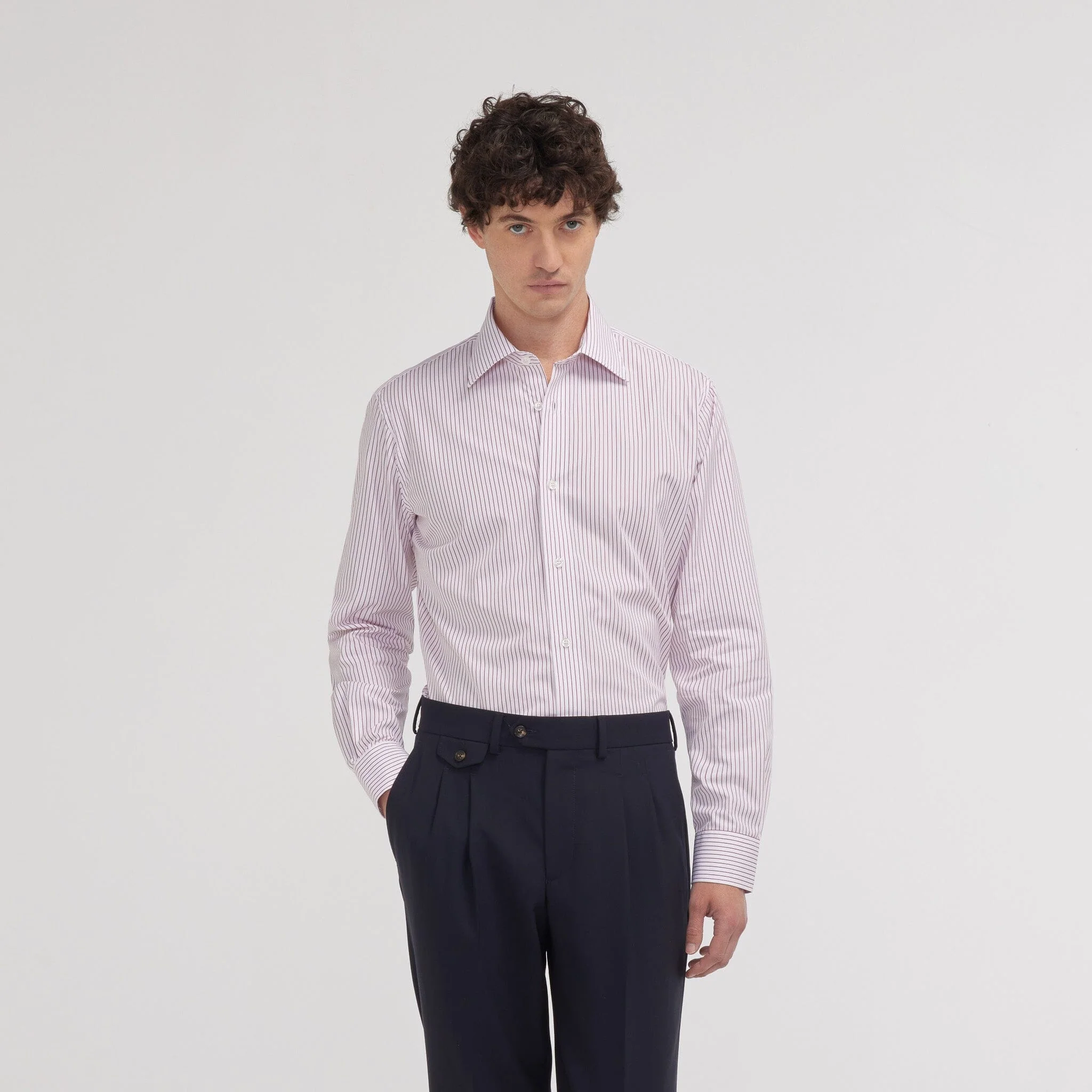 Chemise cintrée en popeline double retors à fines rayures rouges