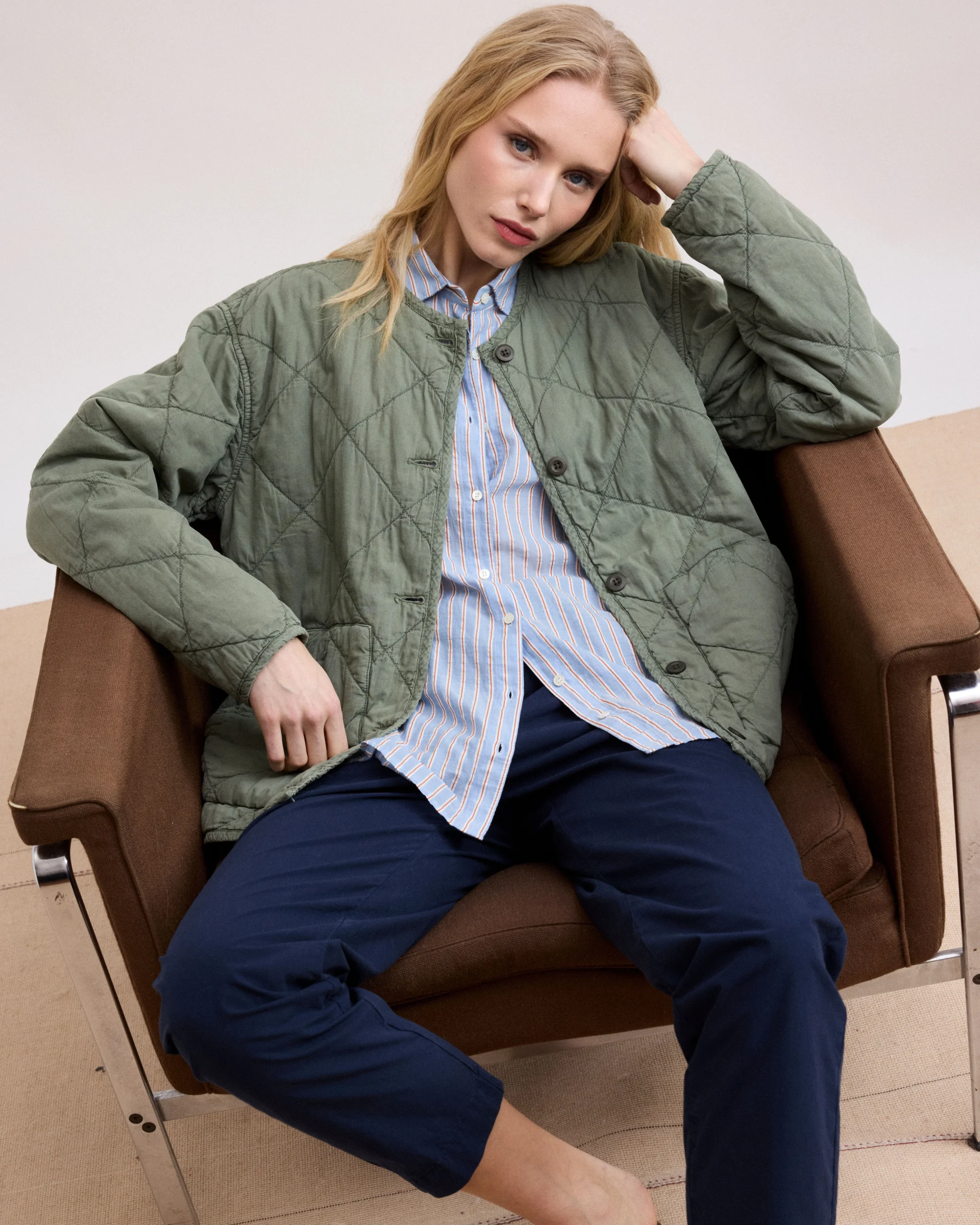 Veste Femme en Gabardine de Coton Matelassée Vert Militaire Vamos