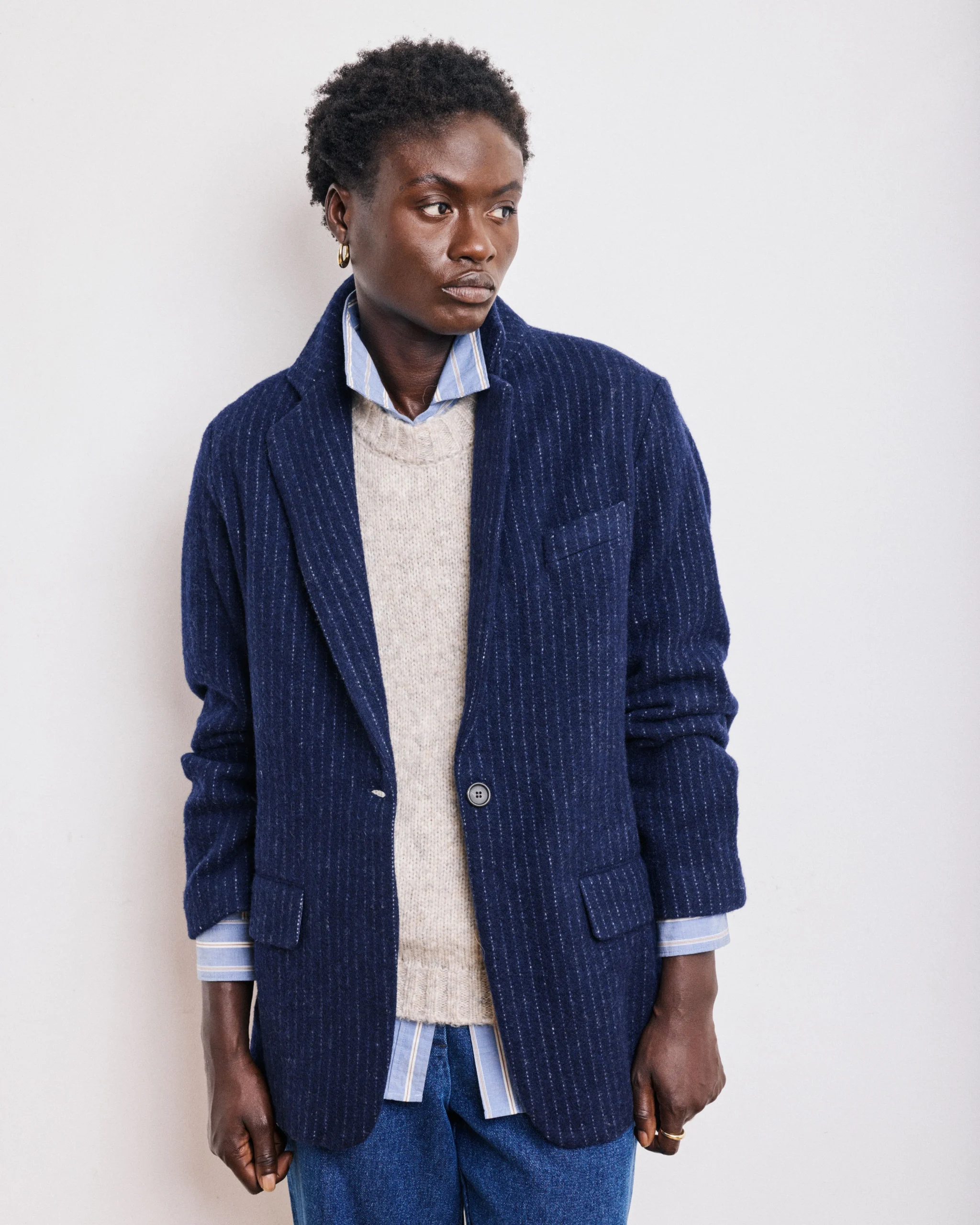 Veste Femme en Laine Bleu Marine & Gris Victo